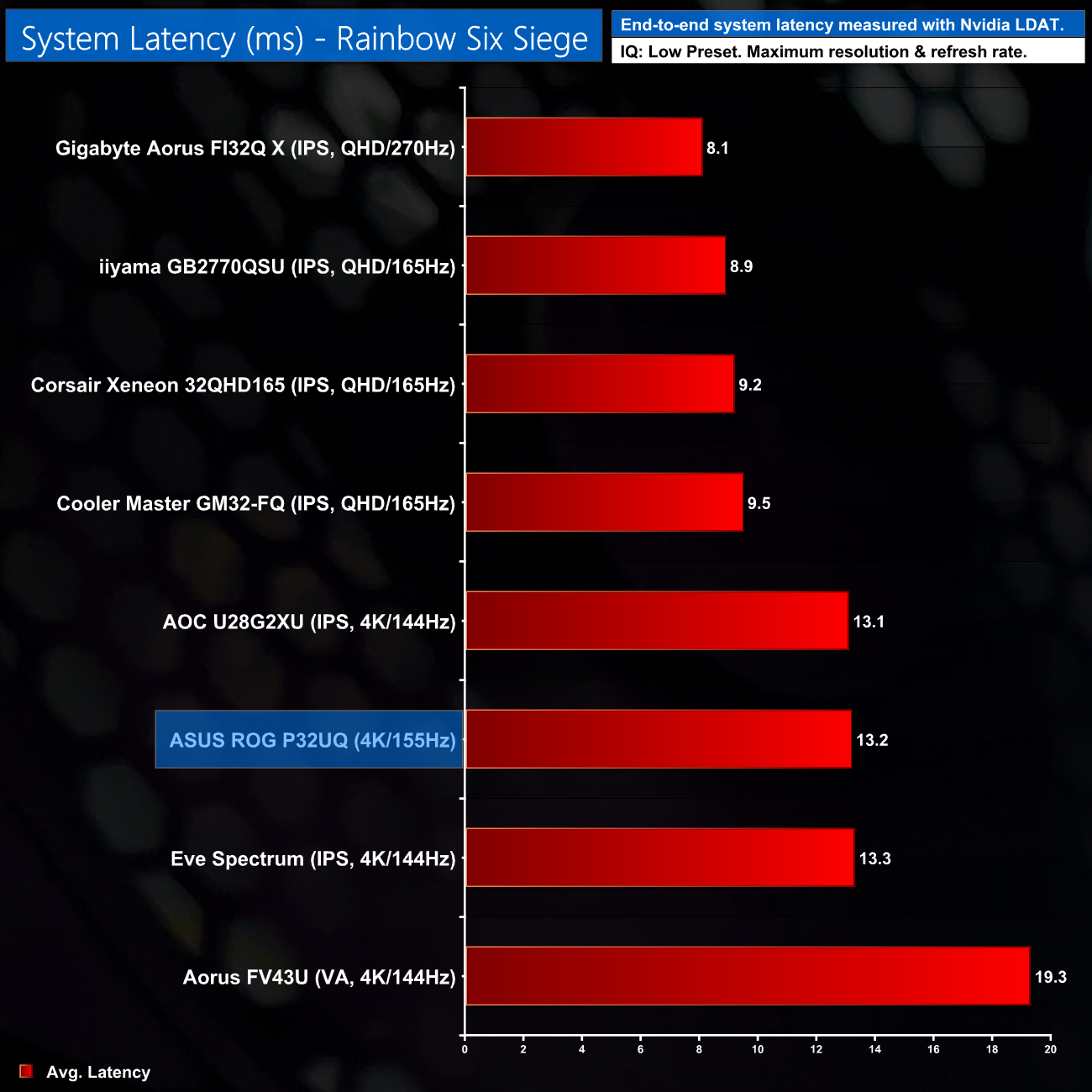 Thankfully, latency is no problem for the PG32UQ, offering essentially the same click-to-fire times as the Eve Spectrum and AOC U28G2XU. The only screens we have tested that can do better are lower resolution and higher refresh-rate, so you're unlikely to get better latency from a 4K/144Hz display.