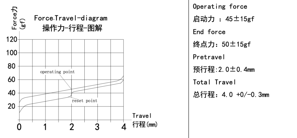 What we can see then, is essentially identical specs to a Cherry MX Red. Give or take some variation, each switch is designed with a 45gf operating force, 2mm of pre-travel and 4mm of post-travel.