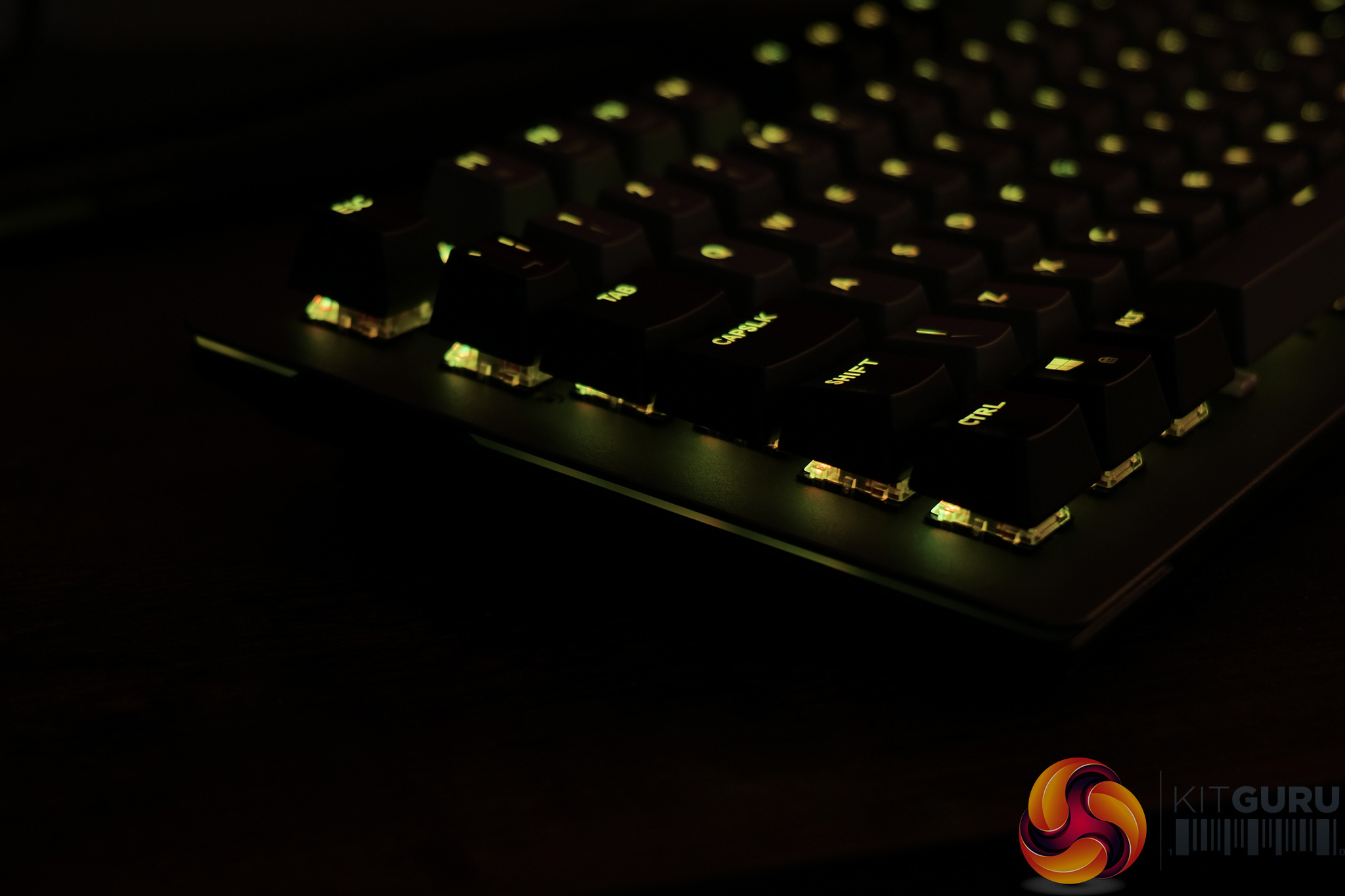 Kicking off our testing with a look at the RGB lighting, the CK352 does a good job here. As mentioned, there's no software used to control this so all adjustments are done from the keyboard itself, but it's very easy to cycle through various modes (including breathing, rainbow wave, rainbow spiral and so on). If you prefer a static colour, you can select one of nine solid colour options or you can manually adjust the red, green and blue levels to get a final output colour that isn't included as one of the nine presets.