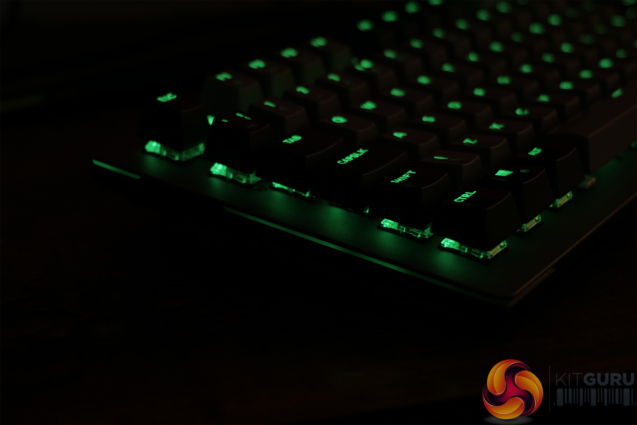 A slight negative area for me though came from a bit of keycap wobble, primarily on the larger keys like enter and space bar. The stabilisers used on these keys don't appear to be of the highest quality as there's quite a lot of lateral movement from the keycaps when resting your fingers on these keys. It's not dreadful and I didn't notice it much when typing, but it is something present on the larger keys. The letter keys didn't exhibit any more wobble than I would expect.