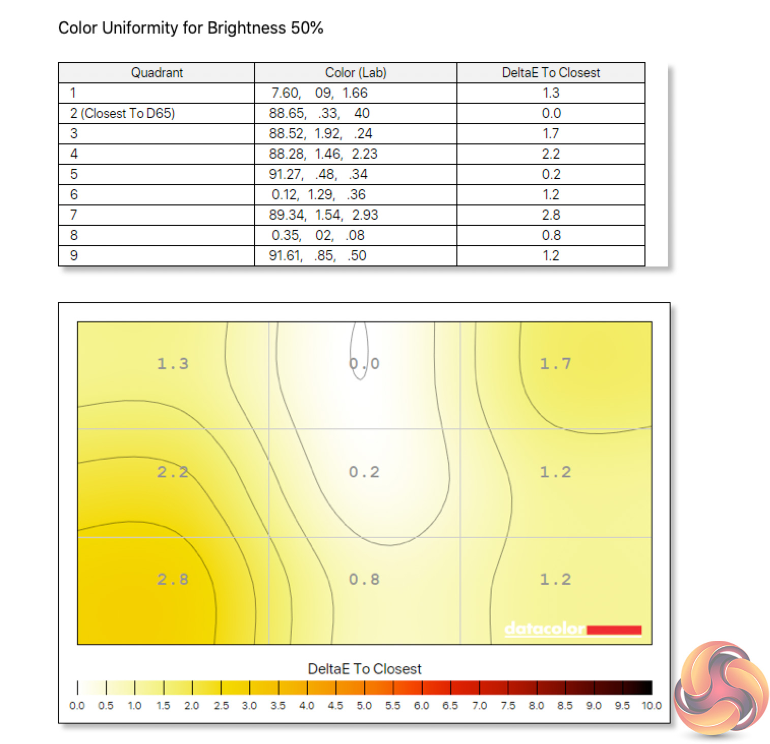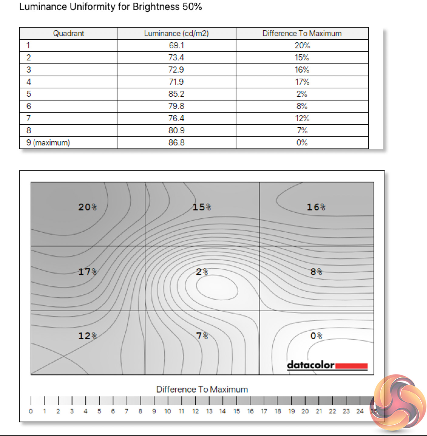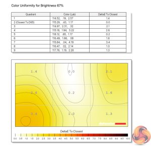 - The brightness deviation across the panel.