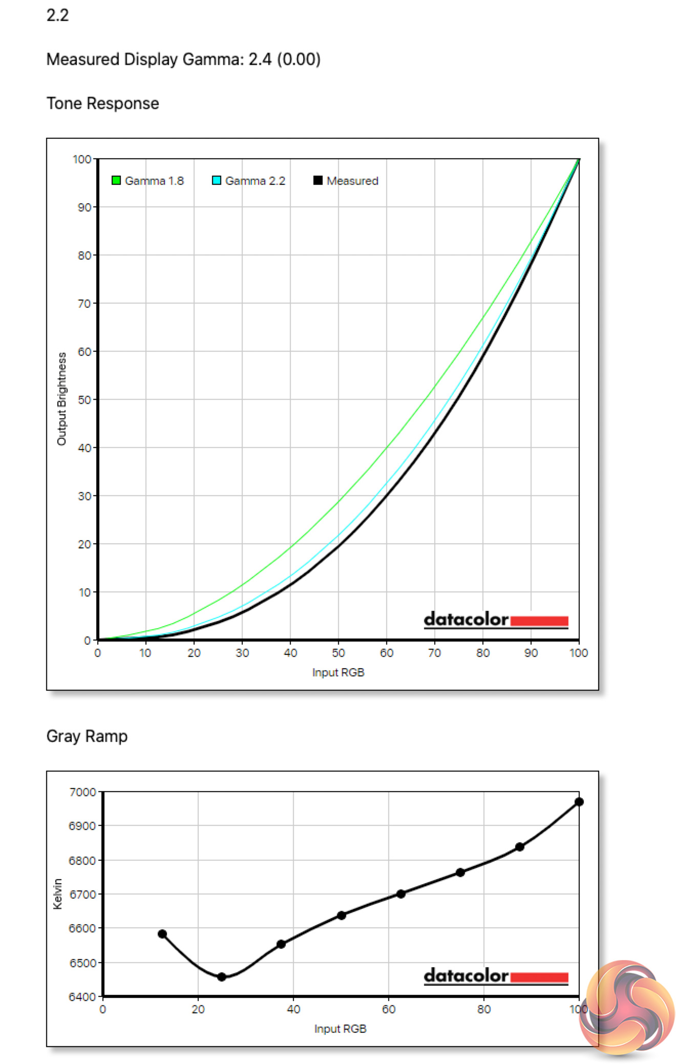 This means, to achieve a gamma value of 2.2 out of the box, you actually want to use the 2.0 setting, as the 2.2 settings produces a gamma value of 2.4. It's a quirk for sure, but at least it is possible to achieve gamma 2.2.