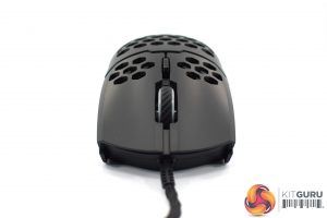 As for the mouse itself, it's an ambidextrous design with plenty of holes cut into the shell. I do like that Cooler Master has made these hexagonal holes shaped like its logo – it's certainly a bit different to the regular ‘honeycomb' design we are used to seeing.
