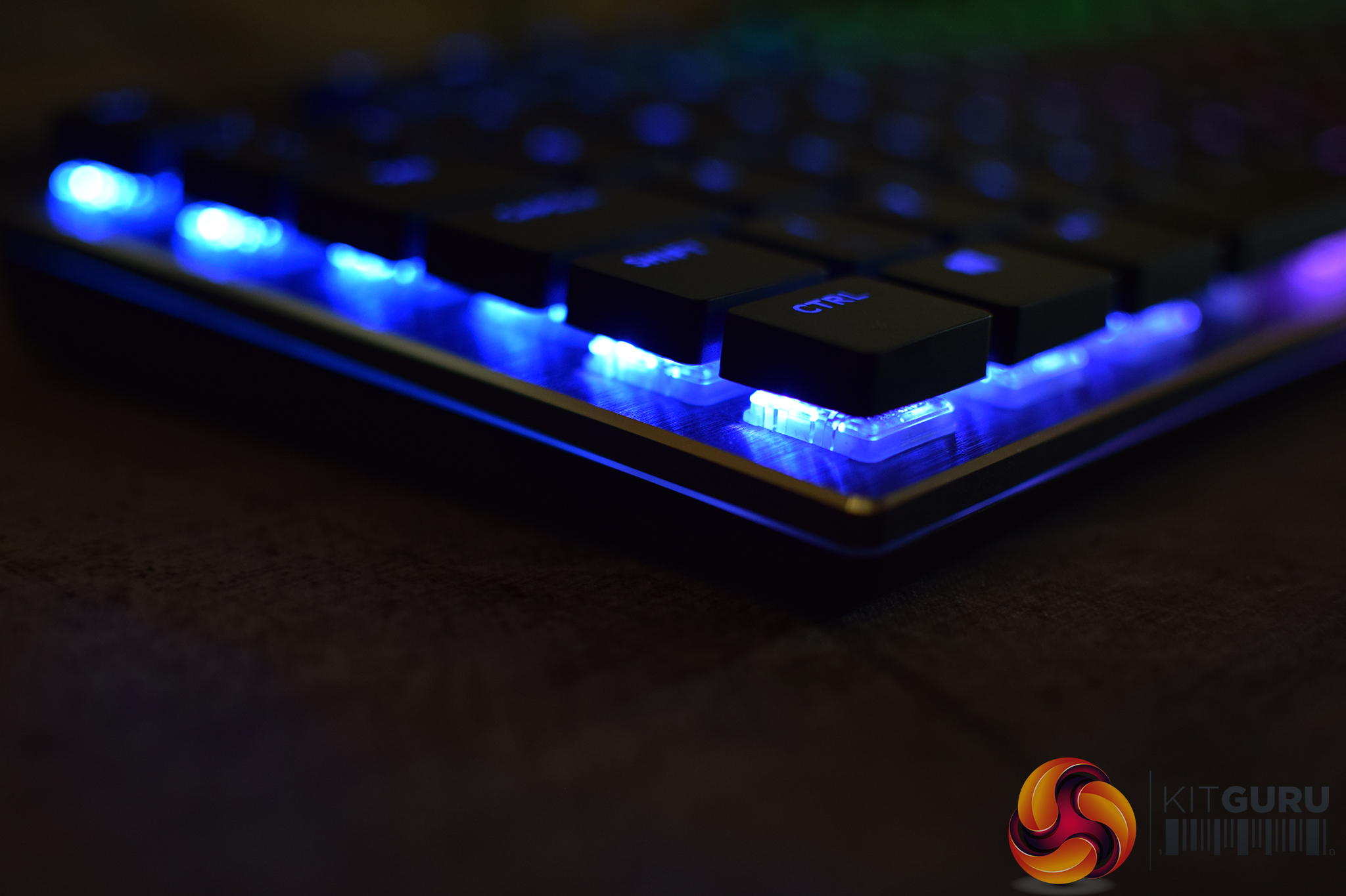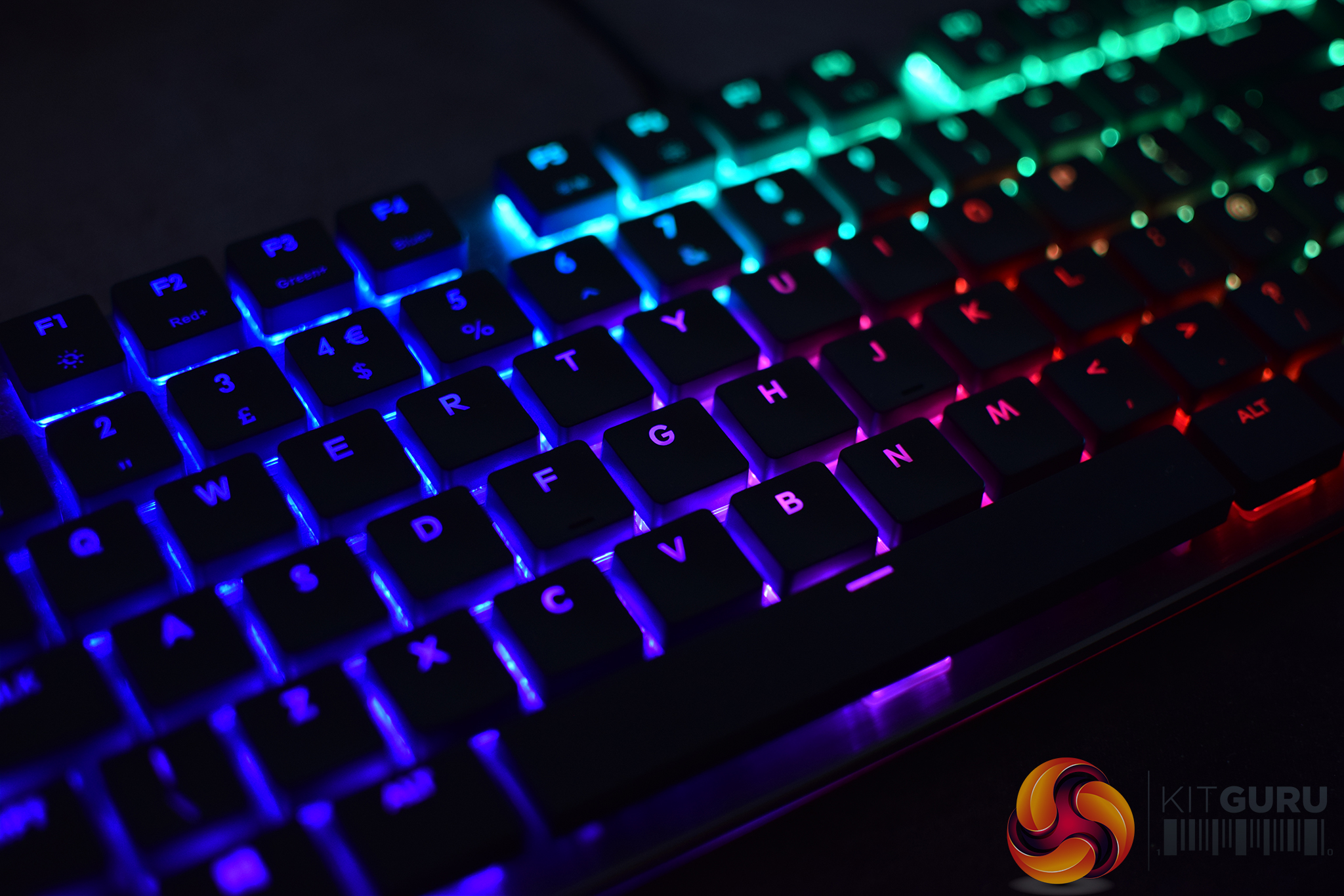 Other features worth mentioning include the wide variety of on-the-fly controls available with the SK630. Most of these features are accessible by using Fn+ function keys – for instance, you can record a macro by using F11, cycle through the RGB modes using F5, or use F2/F3/F4 to manually choose a static colour backlight.