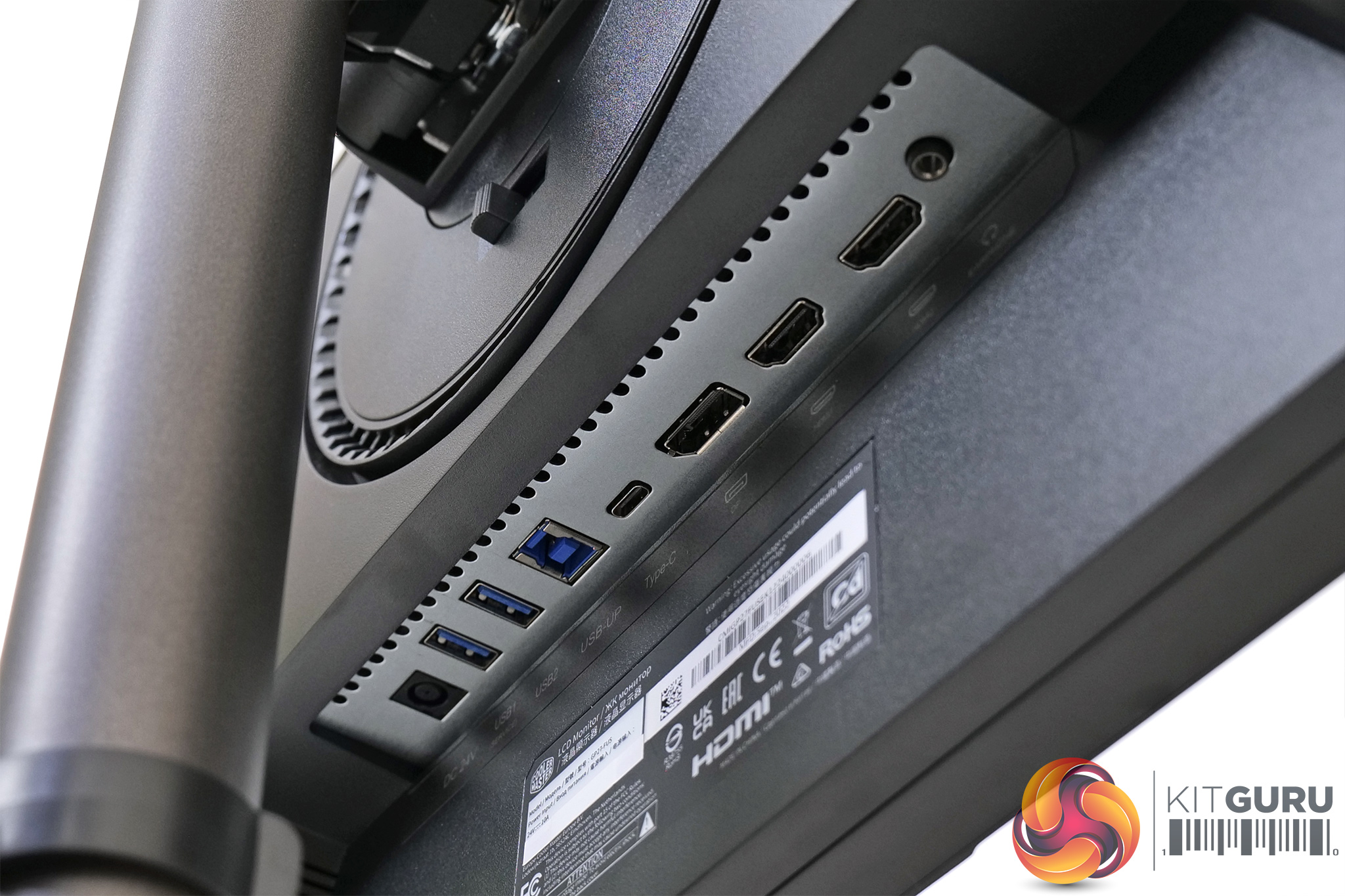There's a healthy selection of connectivity options too. For display inputs, we get a pair of HDMI 2.1 ports, each offerings the full 48Gbps bandwidth, alongside a DisplayPort 1.4 connector and a Type-C port that supports DP Alt mode and up to 90W power delivery. A USB Type-B upstream port feeds two Type-A downstream connectors, and there's an audio jack too.