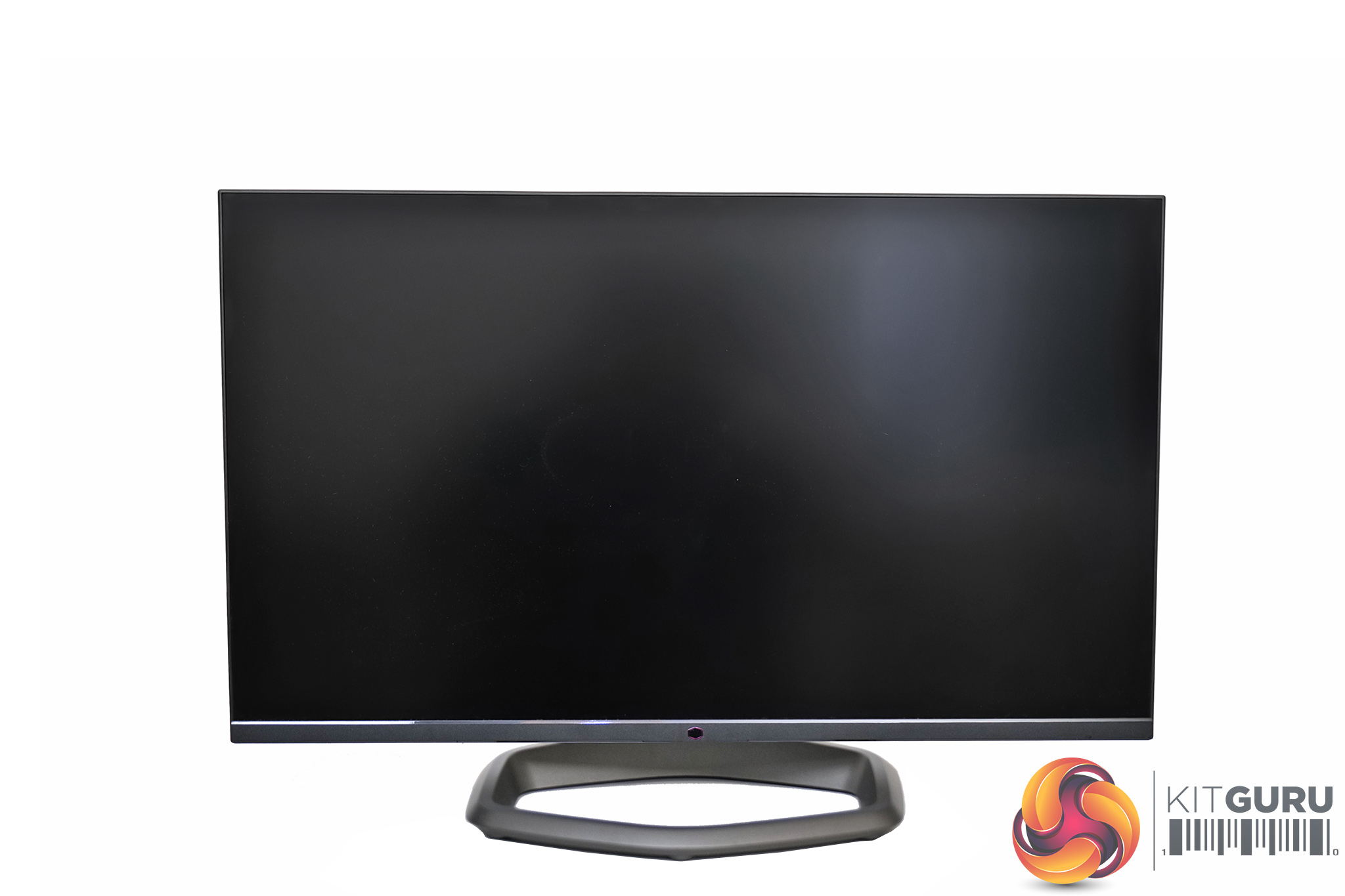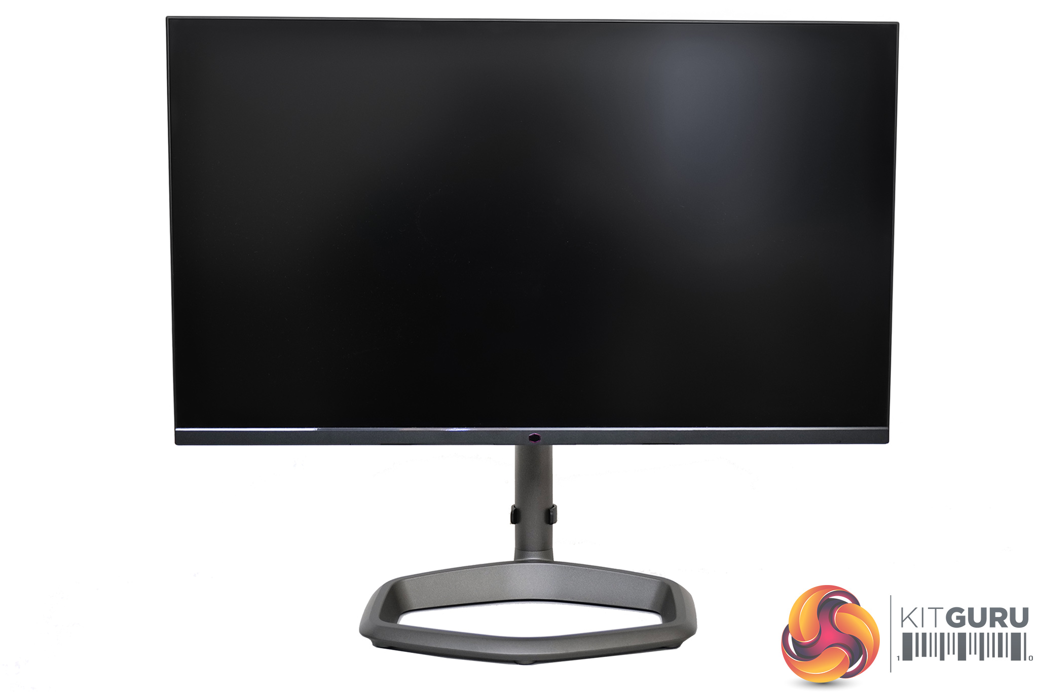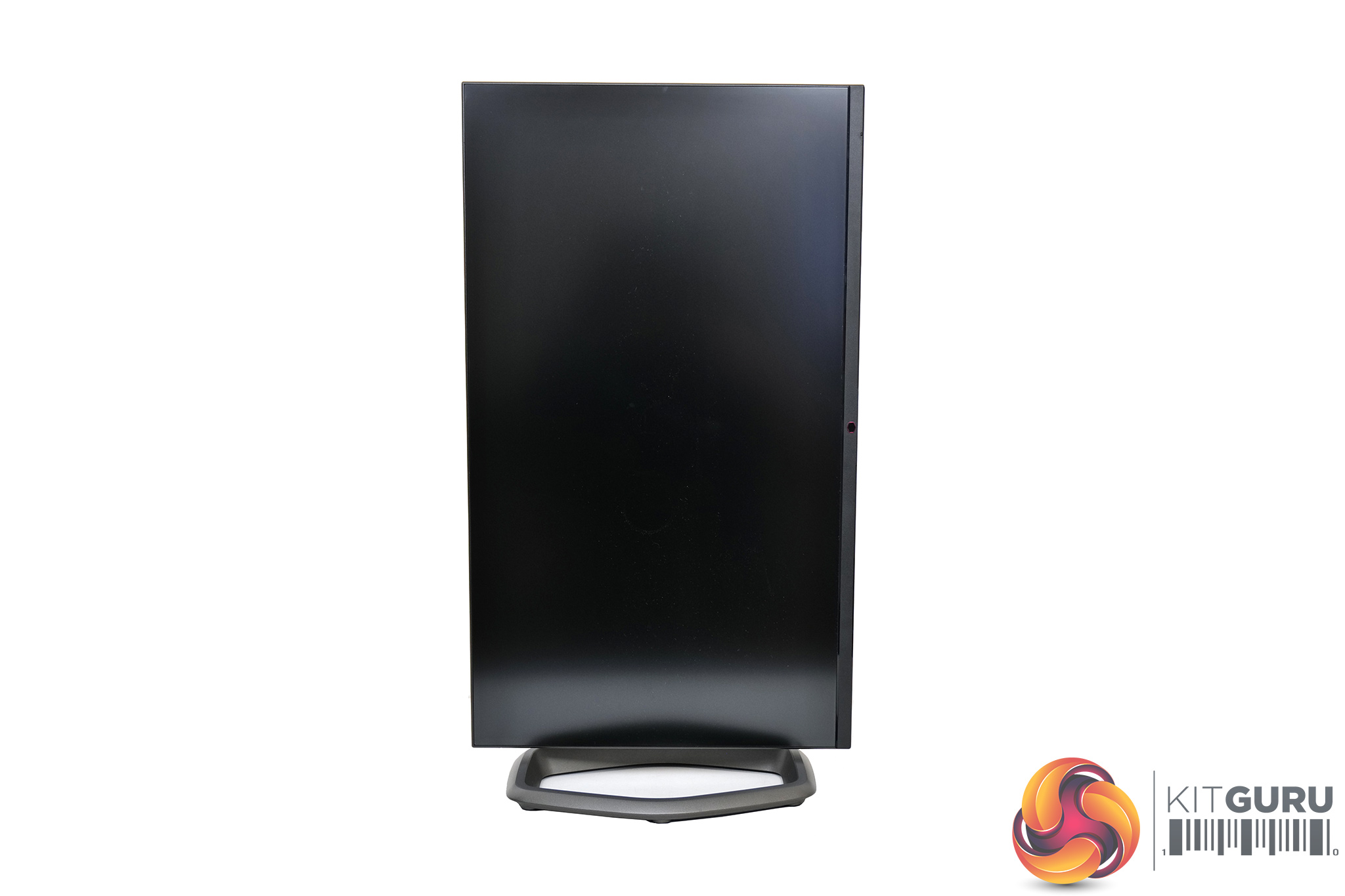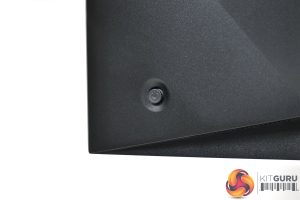 Round the back, the rear of the screen is made from matte black plastic. Those light grey/white-ish sections you can see are RGB diffusers, with one strip in each of the top corners, as well as a circular section around the central stand mount.