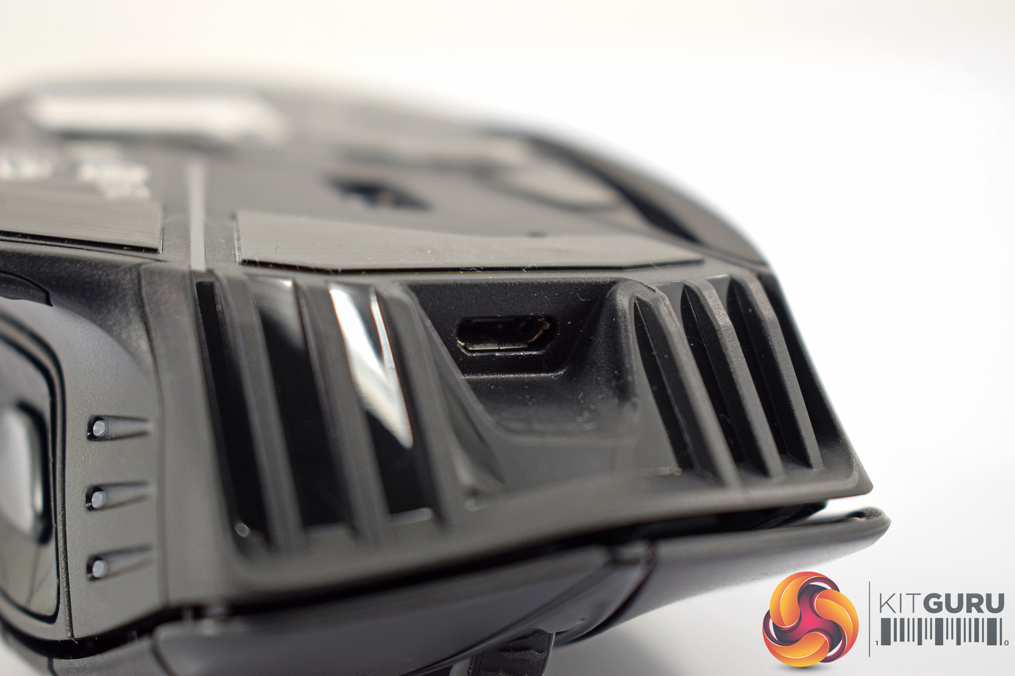 Lastly, at the very top of the mouse the microUSB connector is rather tucked away. You can obviously use this to charge the mouse's battery or to connect the cable for using the mouse as a fully wired unit.