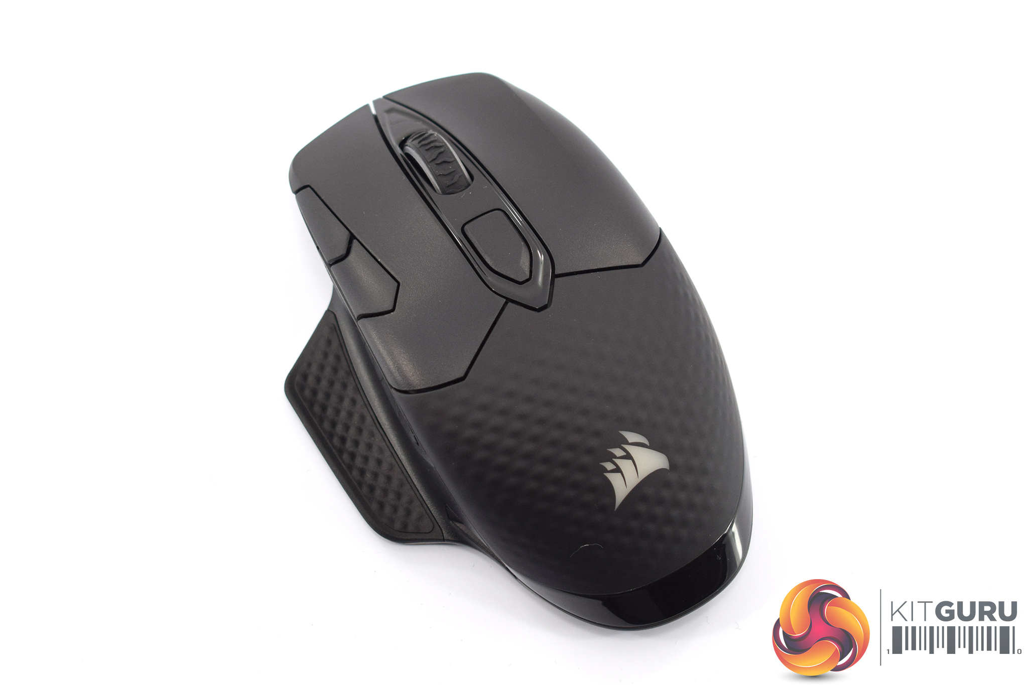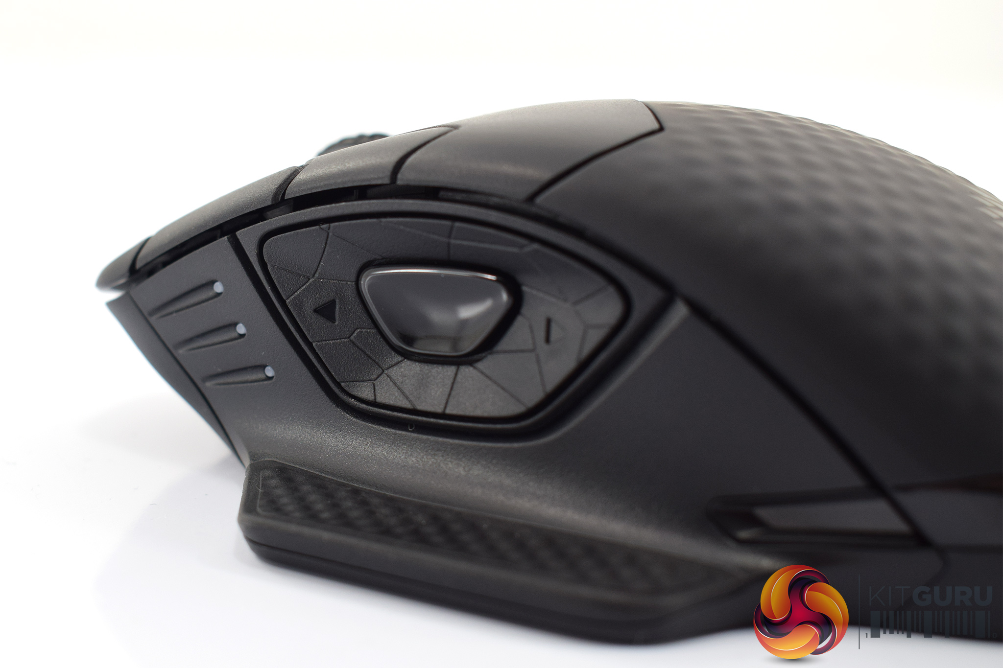 On the left hand side of the mouse, Corsair has done things a bit different with the button layout. The central button is a sniper button which temporarily lowers the mouse's DPI level, and either side of that we have the forward and back buttons.