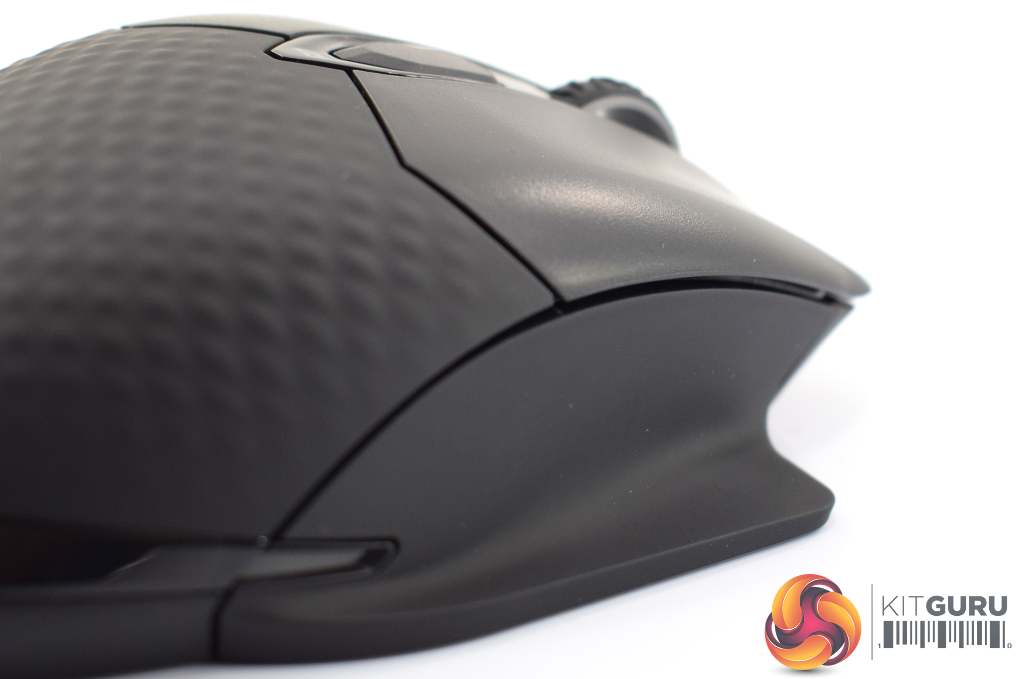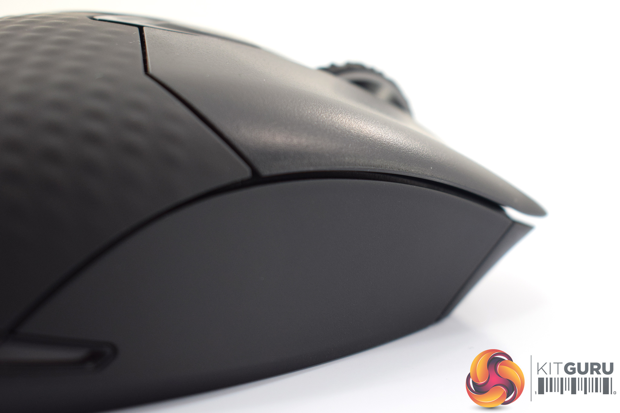 At the top of the mouse, we find the primary buttons, the textured scroll wheel and a single button just below that – which, by default, is for switching profiles. If you're wondering about a DPI switch button, there are actually two built into the side of the LMB – another unconventional move.