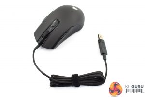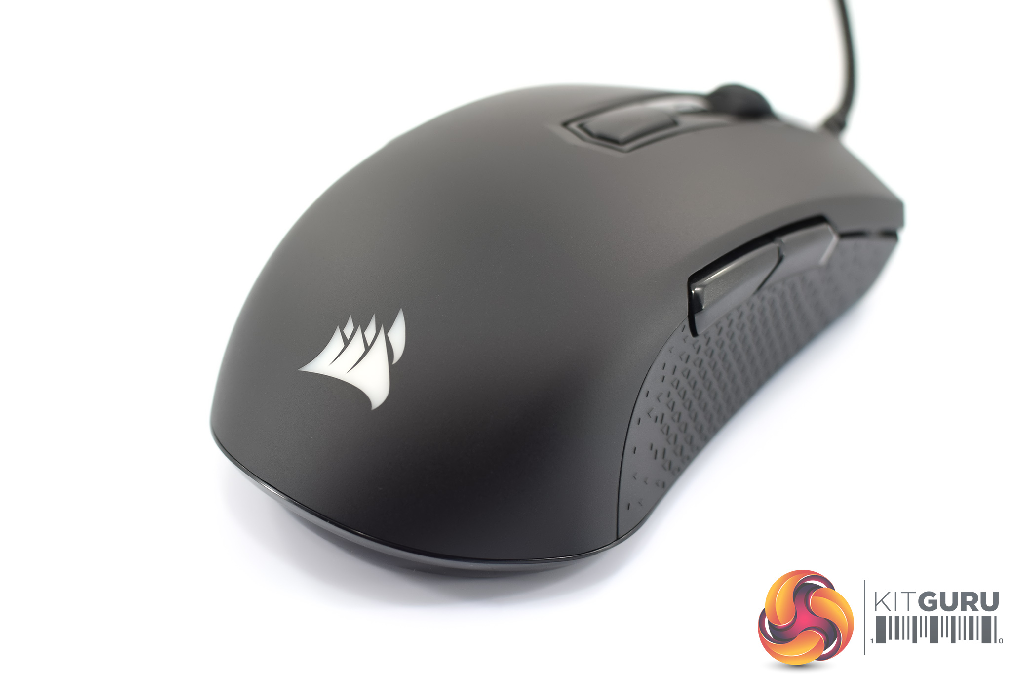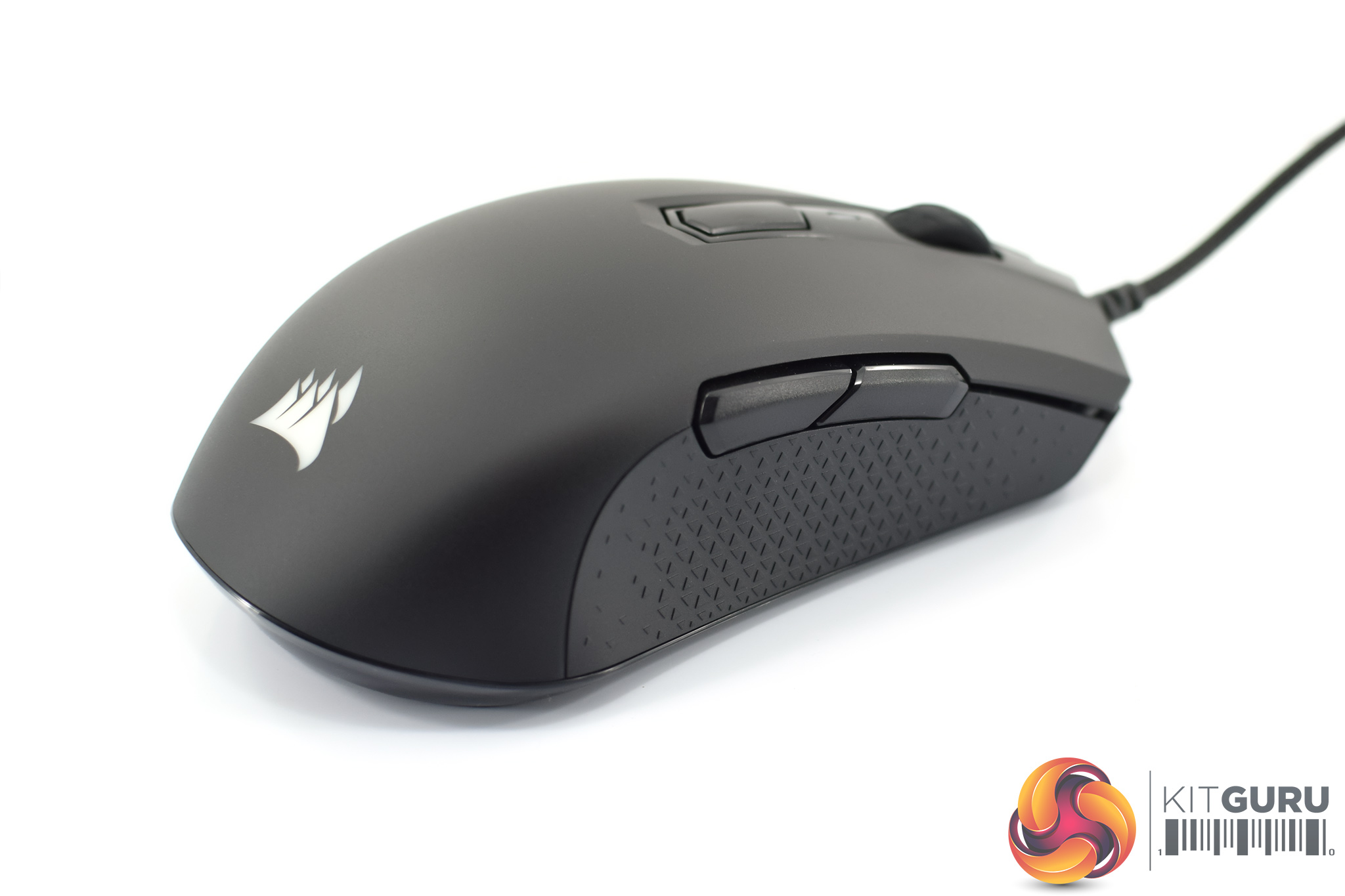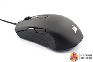 Coming to the sides of the mouse, both are exactly the same with a textured rubber grip and two side buttons. Incidentally, Corsair say these grips are ‘highly durable double-shot side grips', and they also appear to be moulded onto the mouse – as per the Harpoon RGB Wireless – rather than being rubber grips that have been stuck on.