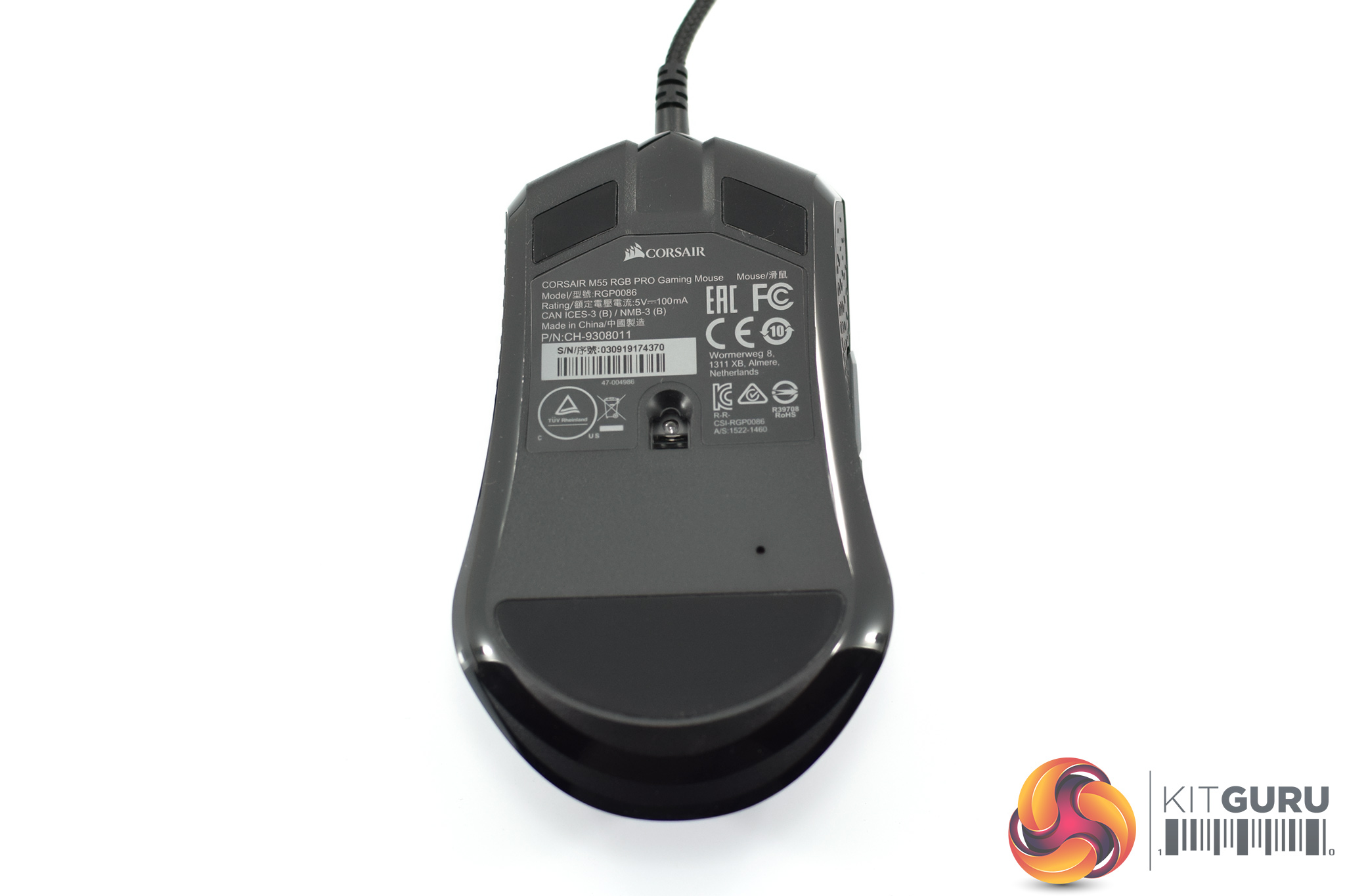 At the bottom of the mouse we get a closer look at the Corsair logo, which of course is RGB illuminated.