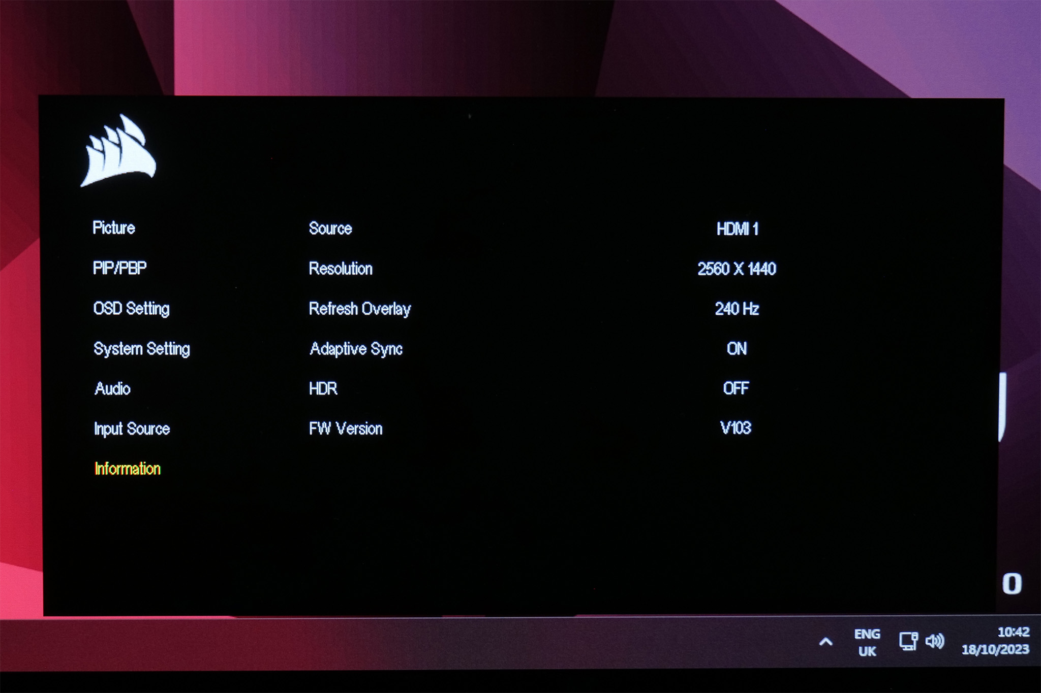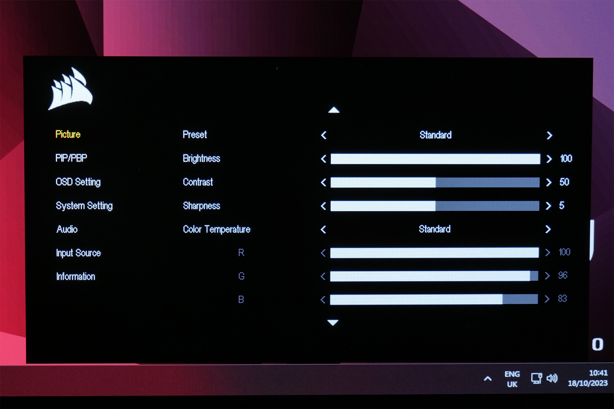 The OSD itself is very similar to what we saw with the Xeneon Flex. It's entirely text-based and while it may not offer as much control as some more feature-rich gaming OSDs, it offers all the core functionality you'd expect and is dead easy to navigate with the joystick. I do think it's a shame that iCUE isn't supported however – this is something that was offered by Corsair's earlier monitors, we've asked if there's a particular reason for the omission and will update the review if we hear back.