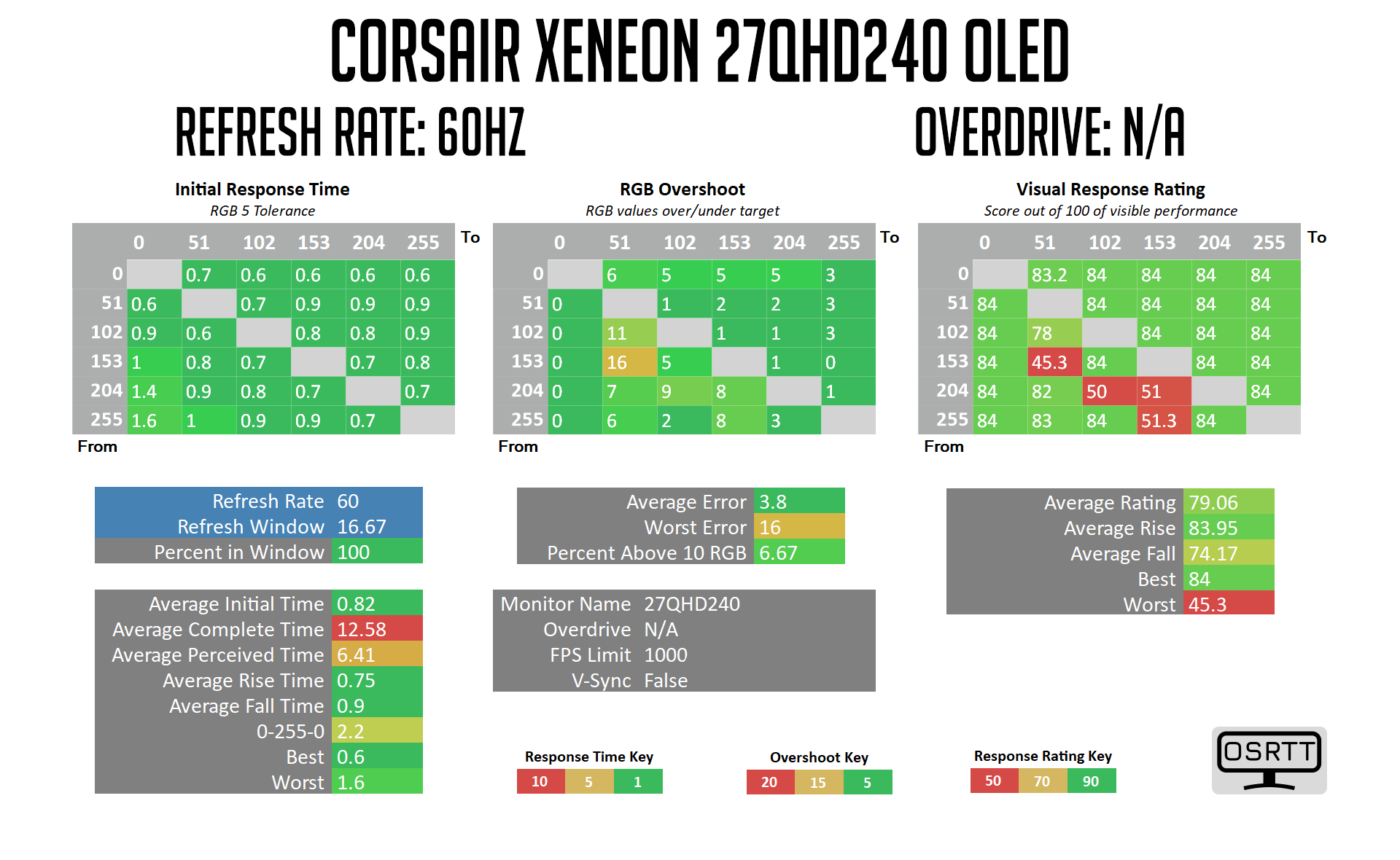Visual Response Rating is a metric designed to ‘score' a panel's visual performance, incorporating both response times and overdrive. Fast response times with little to no overshoot will score well, while slow response times or those with significant overshoot will score poorly.