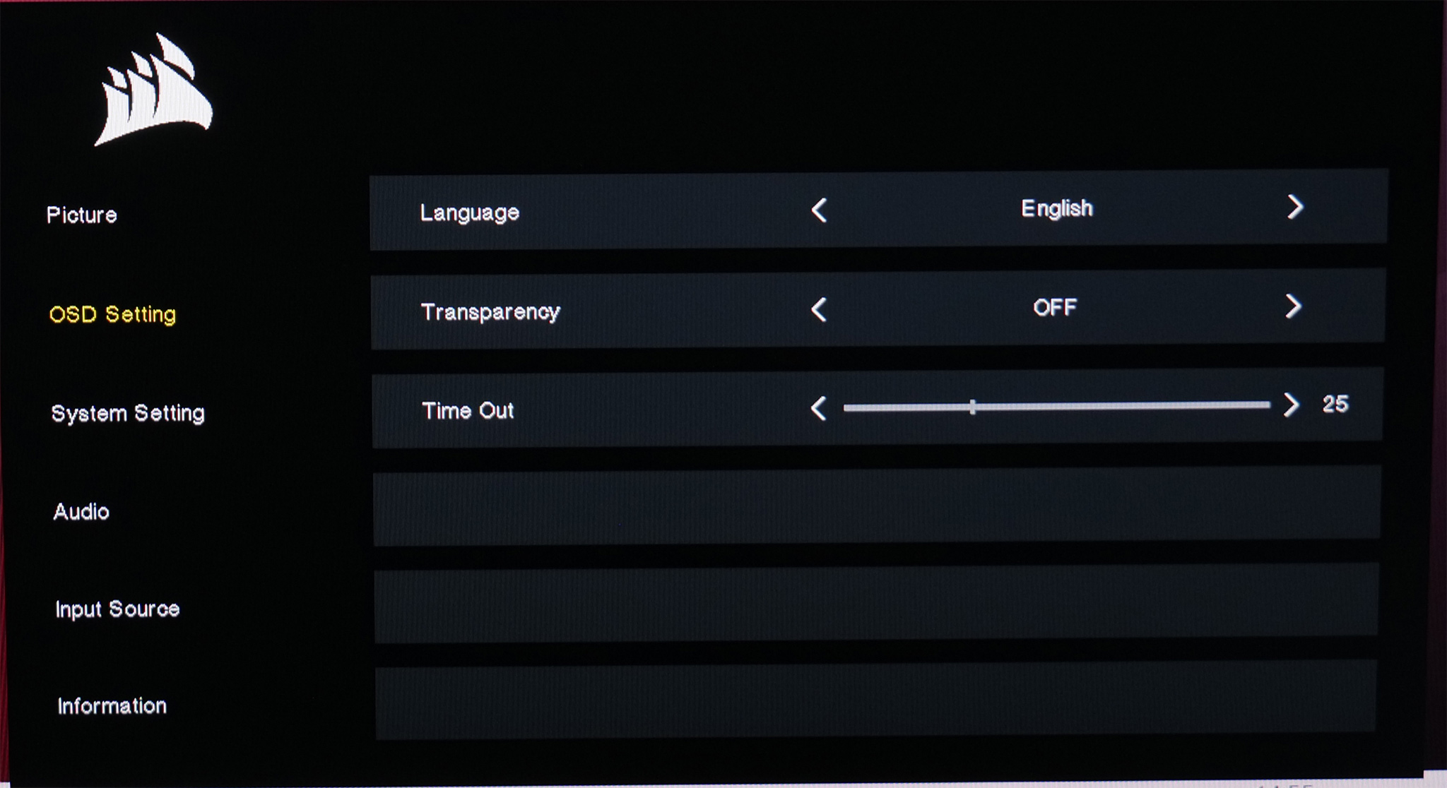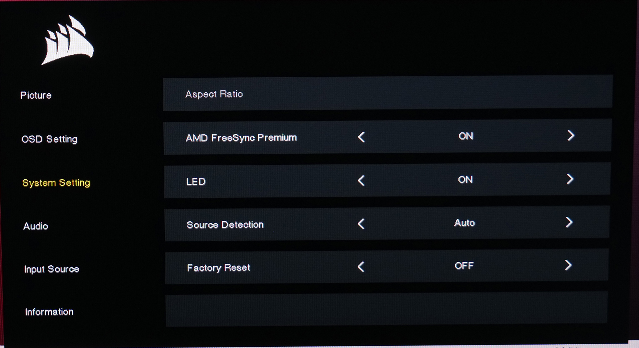 It's broken down into six main tabs – Picture, OSD Setting, System Setting, Audio, Input Source, Information: