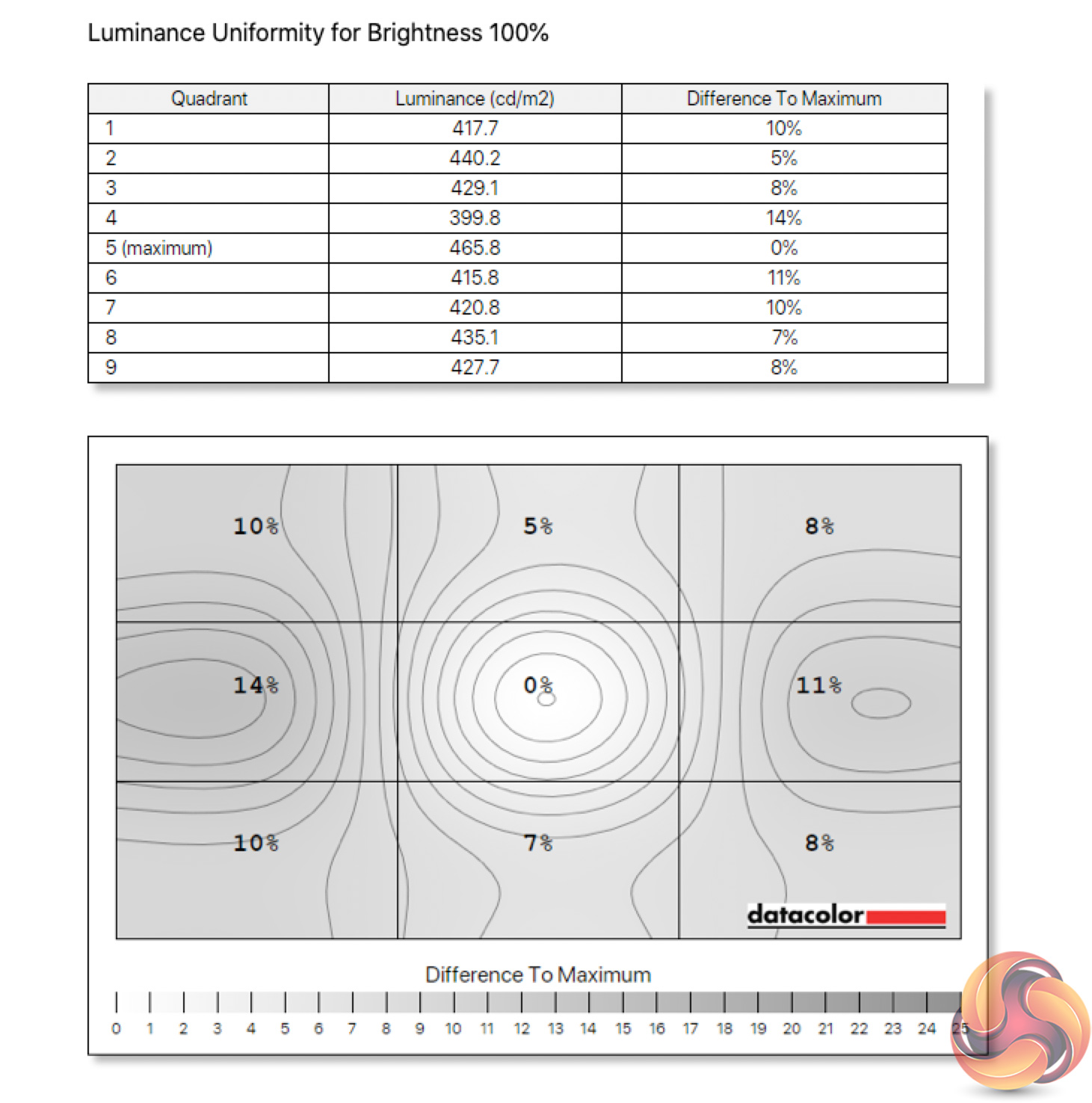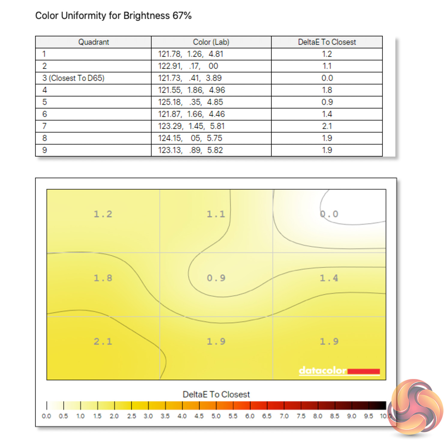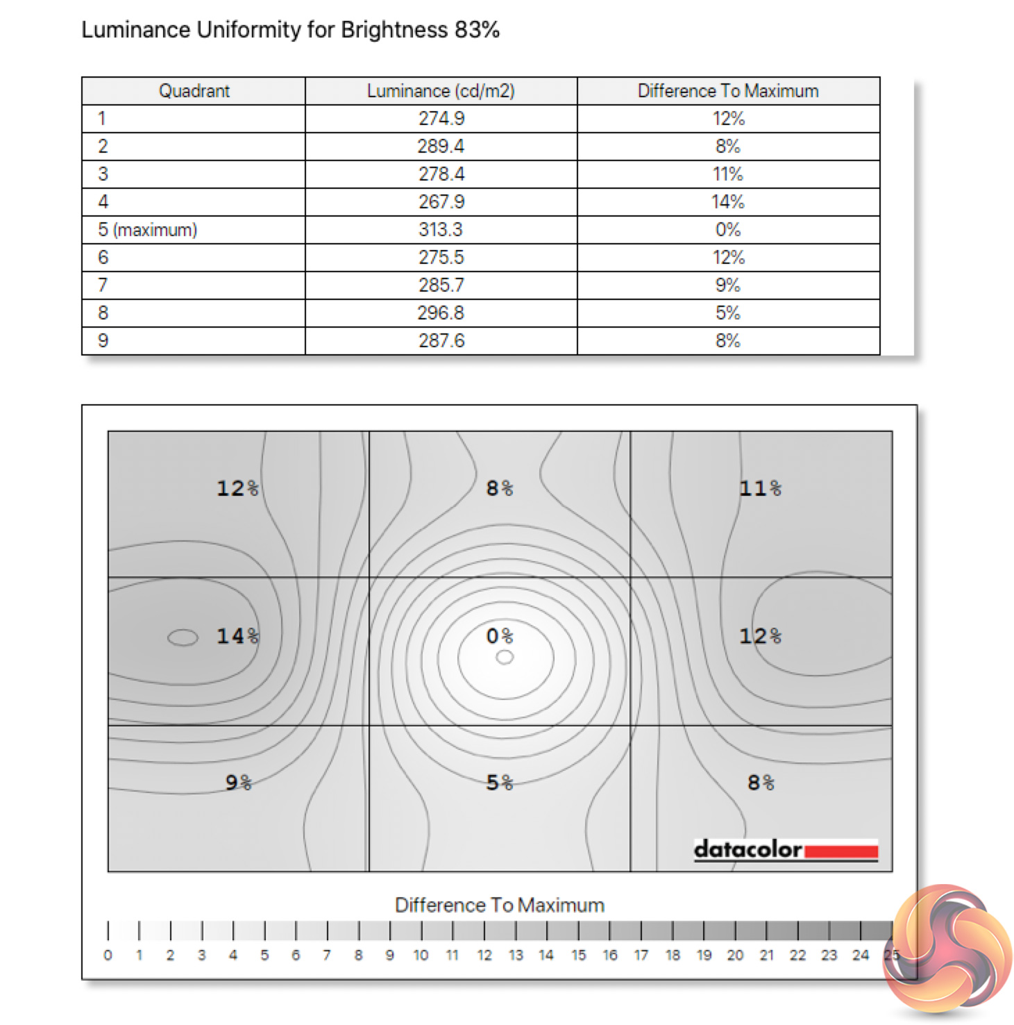 Colour uniformity is excellent too across all four brightness levels tested (100%, 83%, 67% and 50%.) There's only a minimal difference reported.