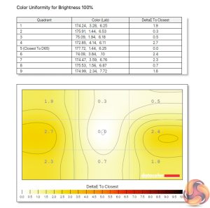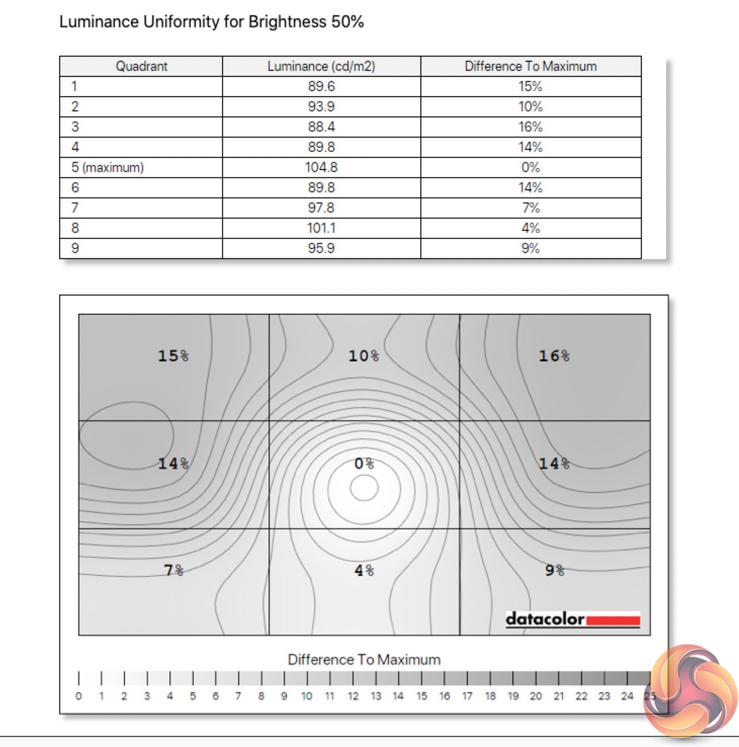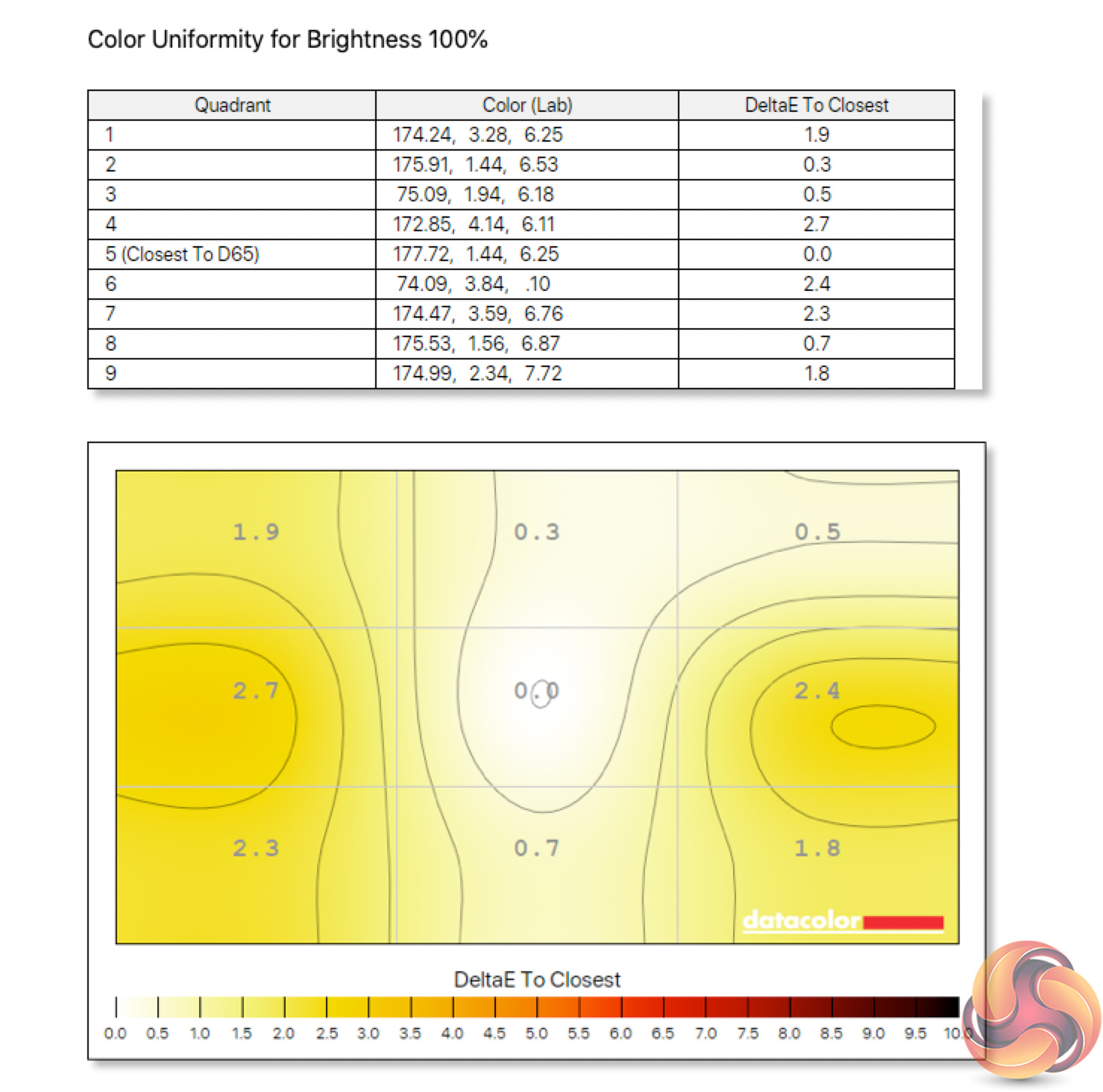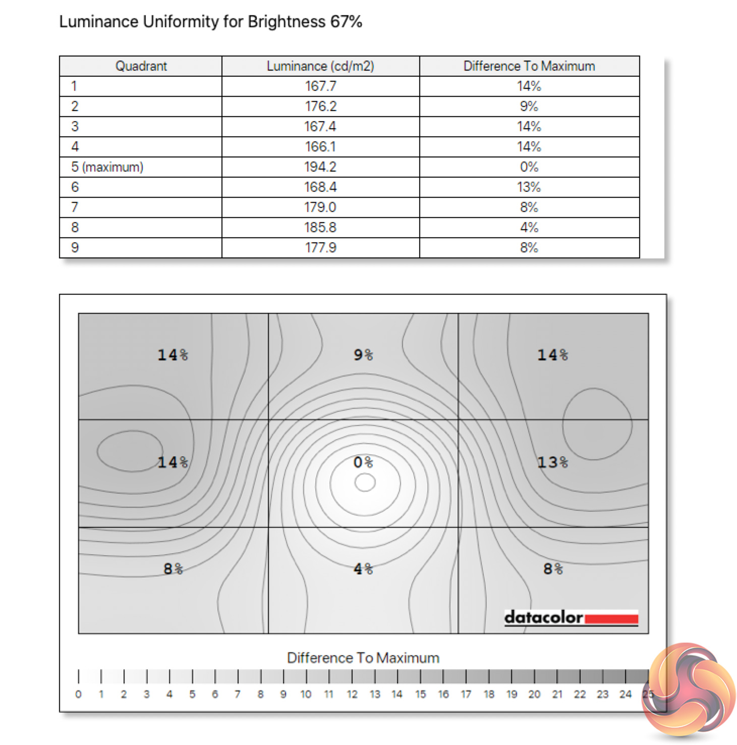 Colour uniformity is excellent too across all four brightness levels tested (100%, 83%, 67% and 50%.) There's only a minimal difference reported.