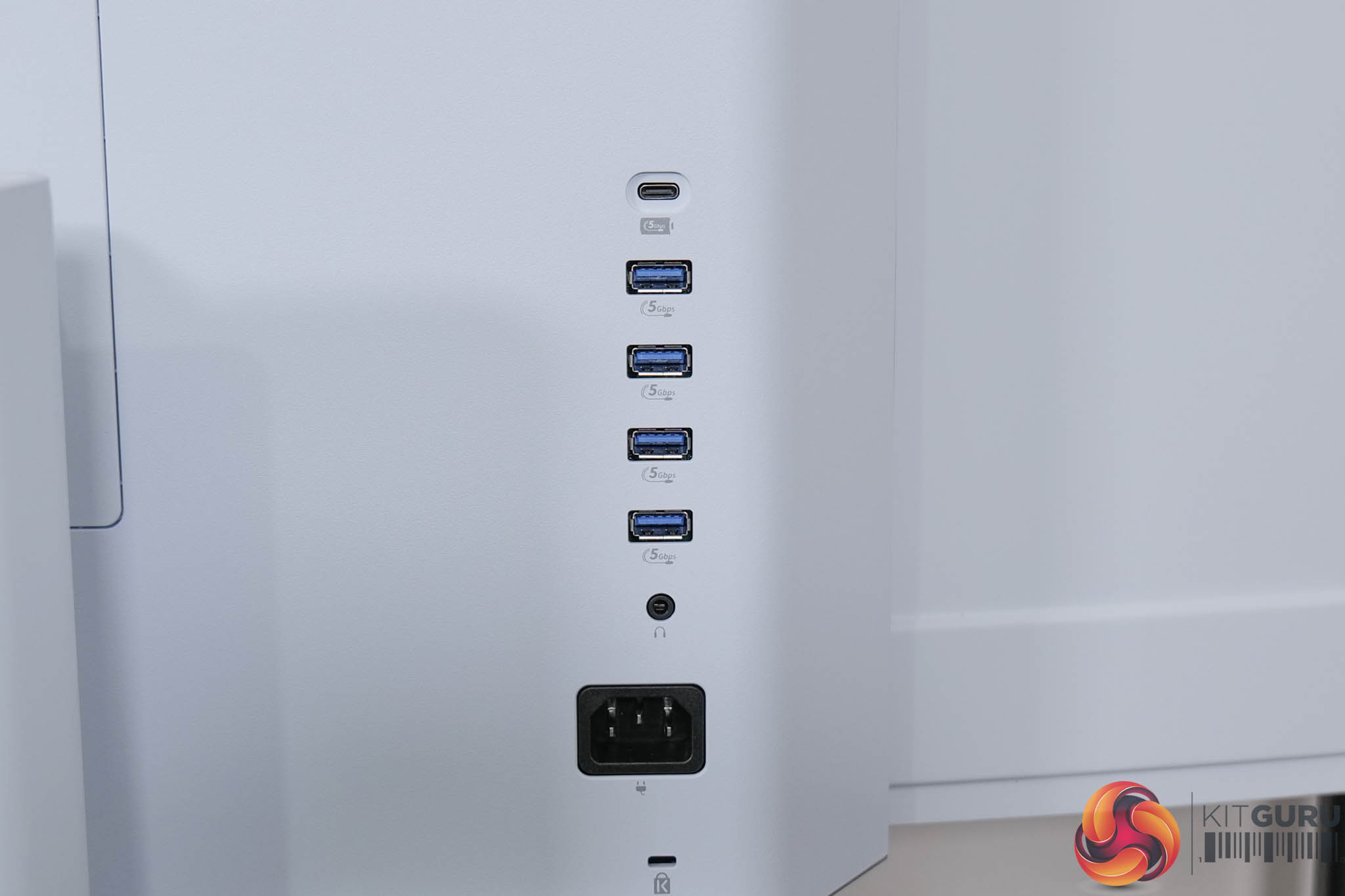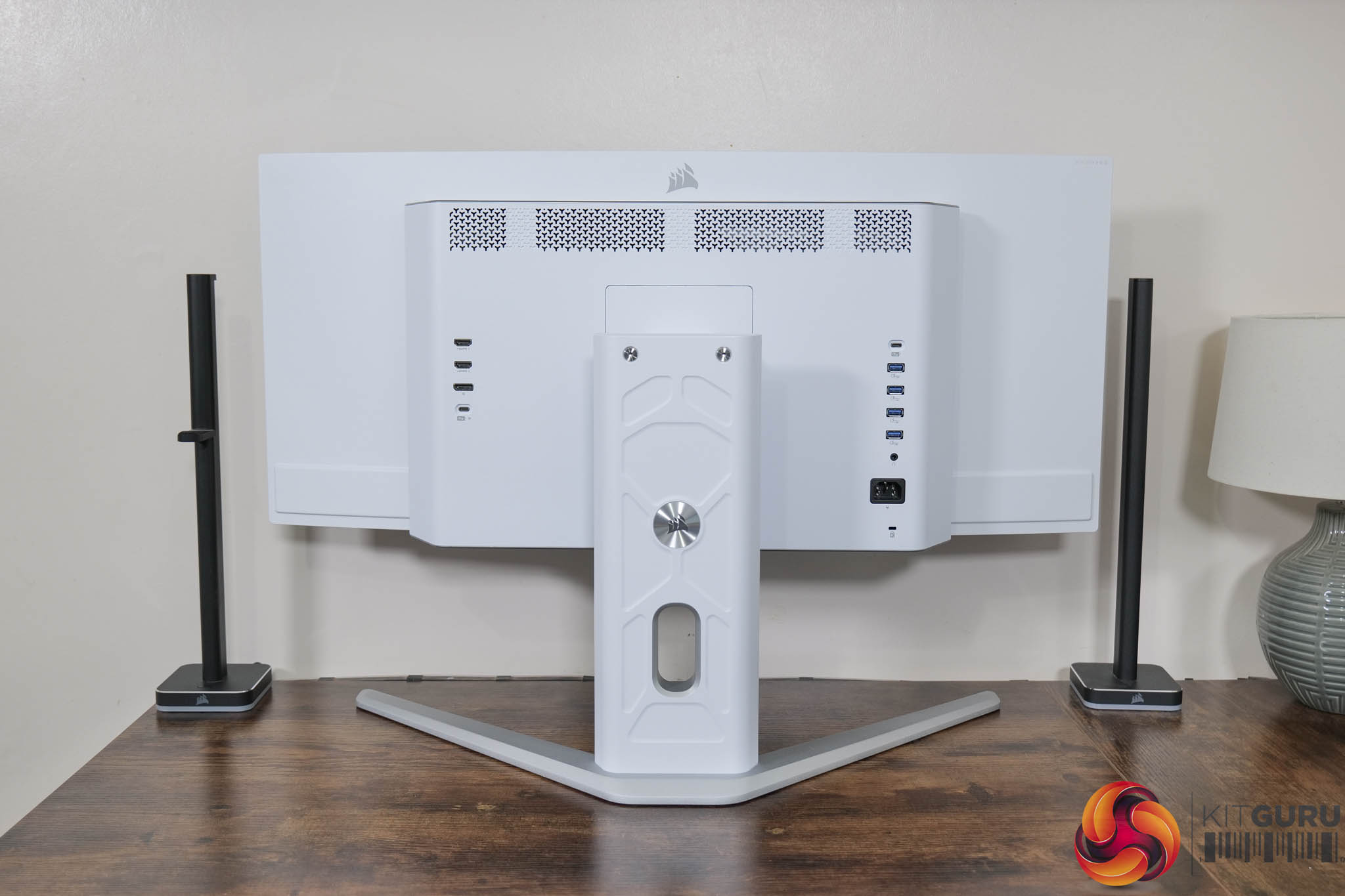 As we've come to expect from Corsair monitors, the I/O is positioned facing outwards on the back of the central hub. The display inputs are positioned on the left-hand side (when viewed from the rear) and include 2x HDMI 2.1, 1x DisplayPort 1.4, along with 1x USB-C that supports DP-Alt mode and 65W power delivery.