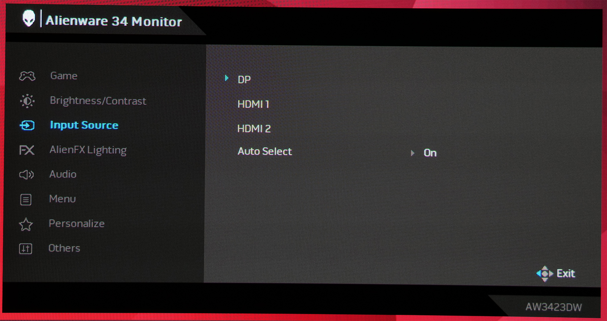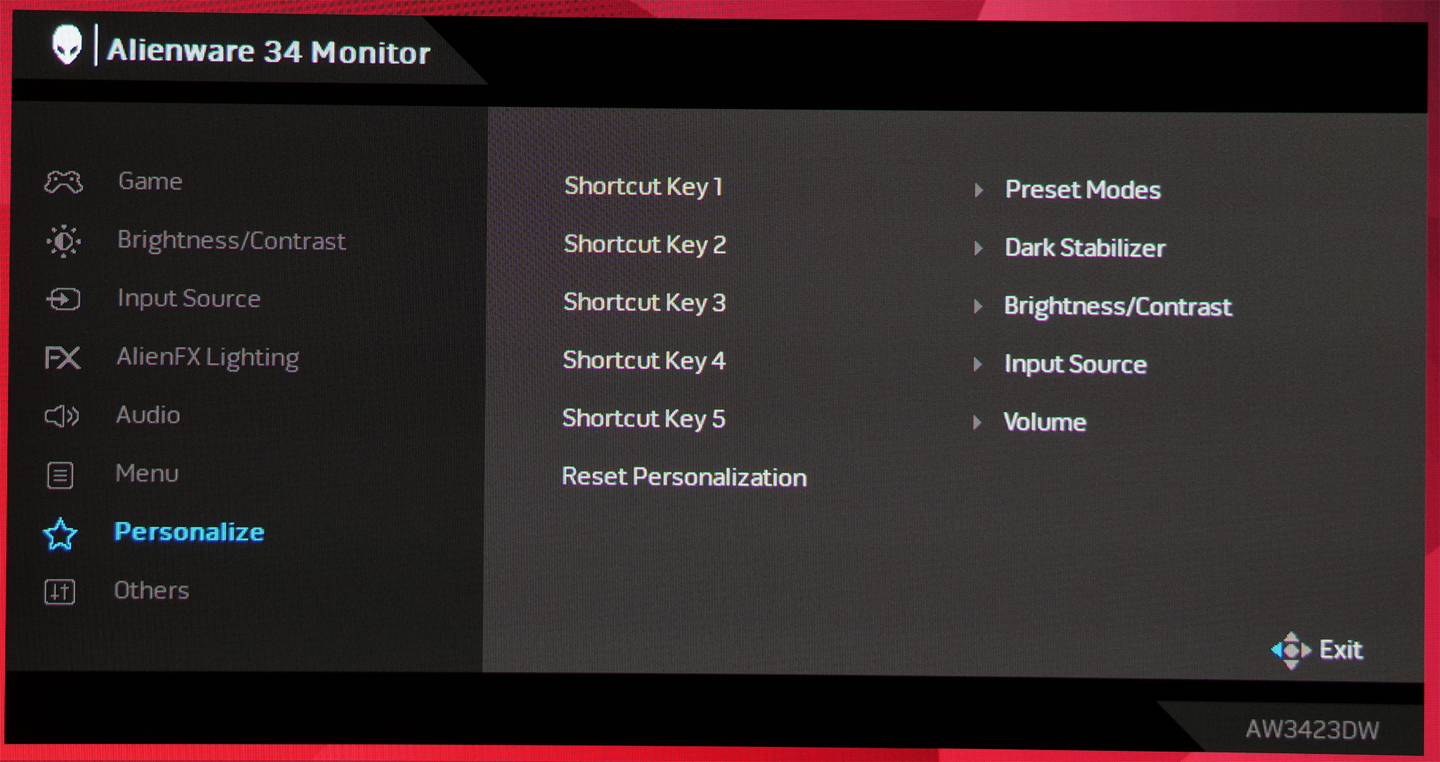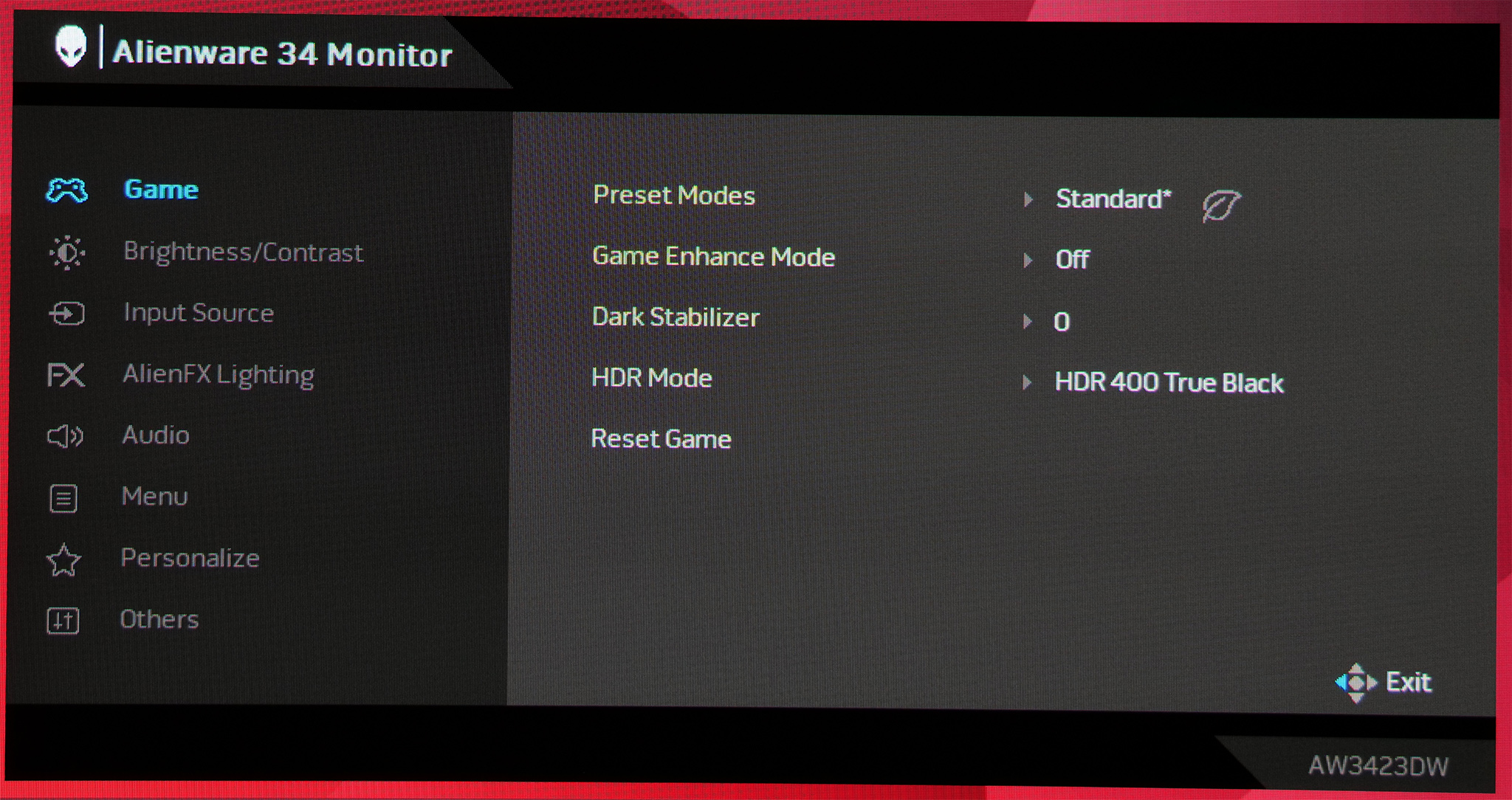 The OSD for the AW3423DW is very straightforward and easy to use thanks to the joystick. There's actually no physical buttons on the monitor at all, aside from the power button.