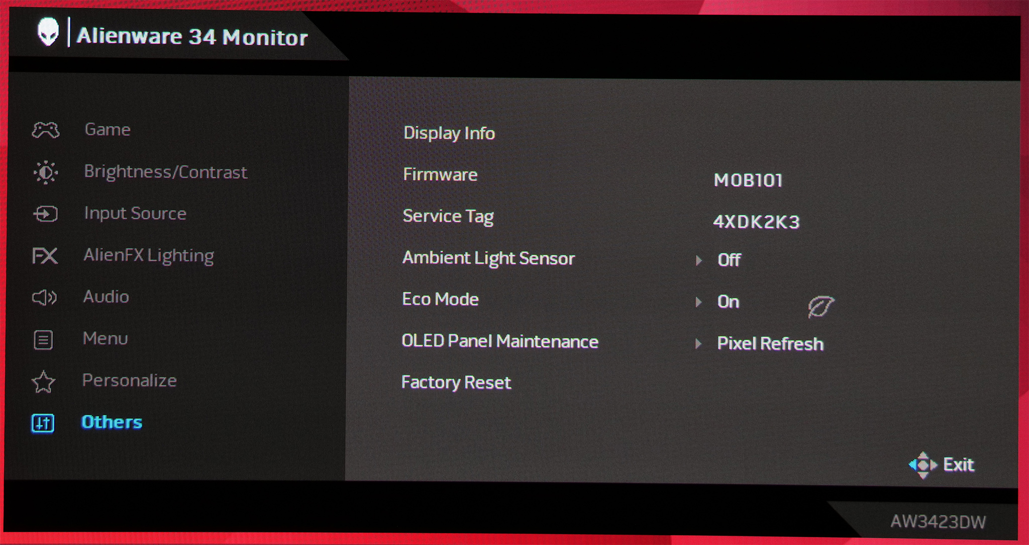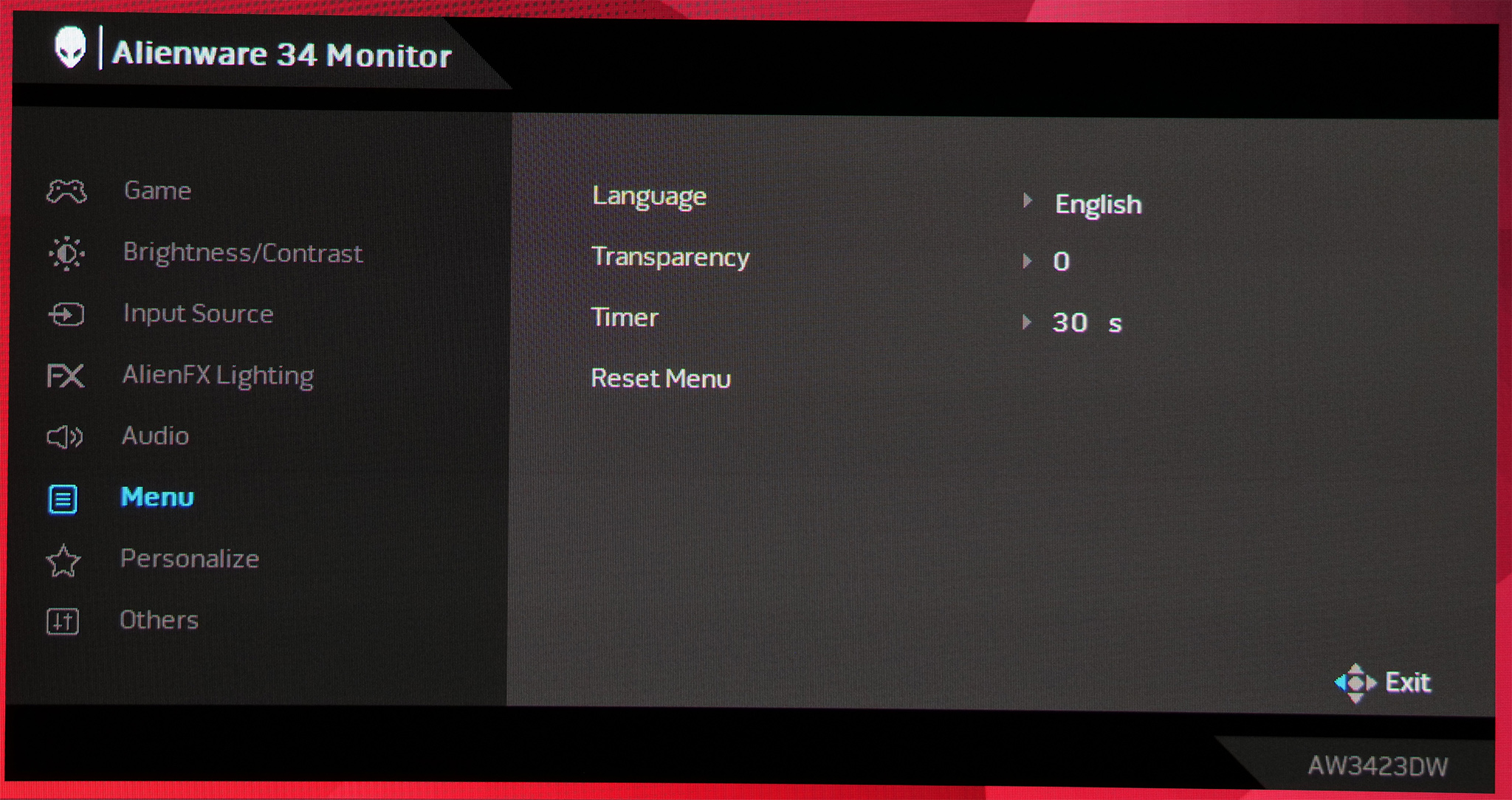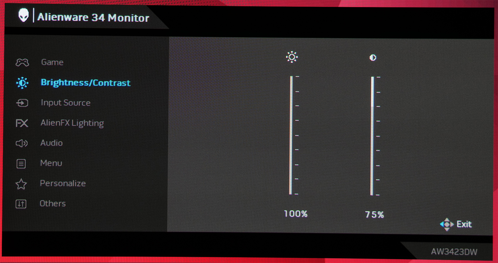 The OSD for the AW3423DW is very straightforward and easy to use thanks to the joystick. There's actually no physical buttons on the monitor at all, aside from the power button.