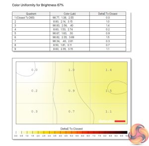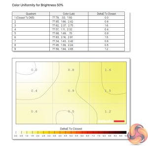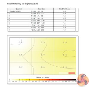 Colour uniformity is also top class, with only very minor deviation towards the upper right corner of the display. Even then, this is the most colour-uniform display I have ever tested.