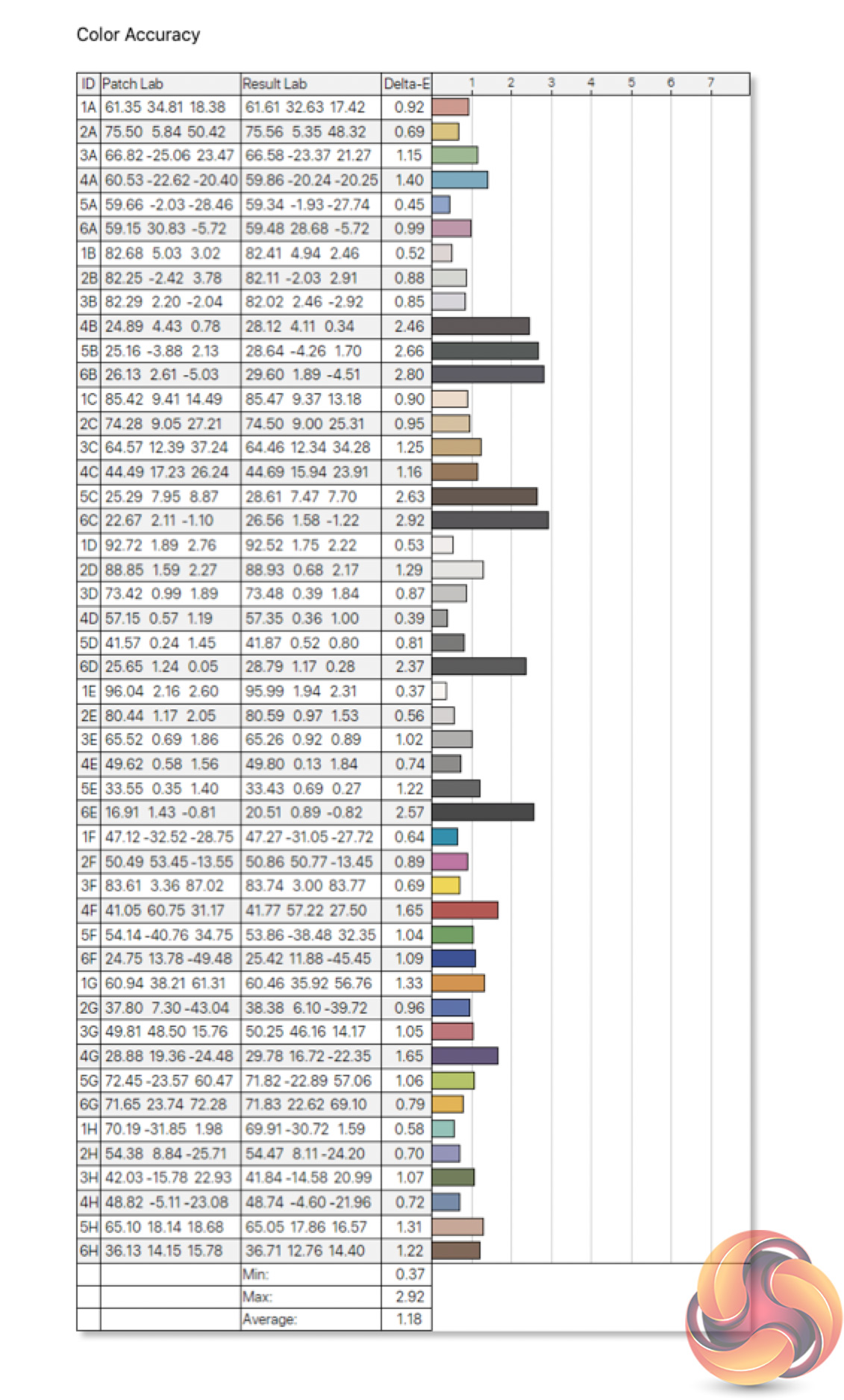 - The colour accuracy, expressed as a Delta E ratio, with a result under 3 being fine for normal use, and under 2 being great for colour-accurate design work.