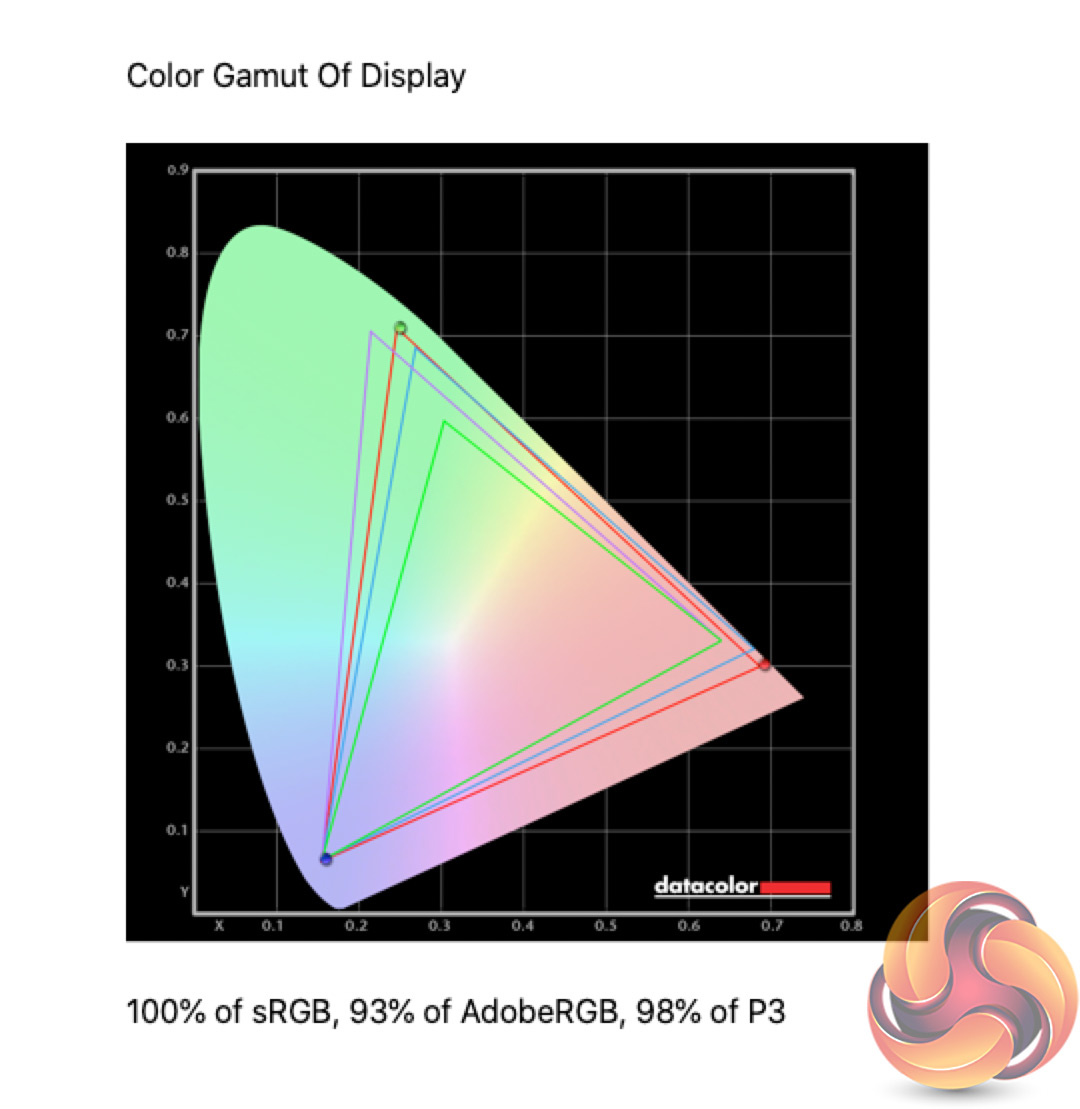 As the Alienware AW3423DW uses a QD-OLED panel, where a Quantum Dot layer convert's the panel's blue light into red and green, we find a very wide colour gamut on offer. That includes 100% sRGB, 95% AdobeRGB and 99% DCI-P3 coverage, so it's not a bad start at all.