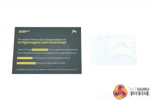 Inside, a small note about where to download the accompanying software suite is included, alongside two replacement mouse feet – more on the feet below.