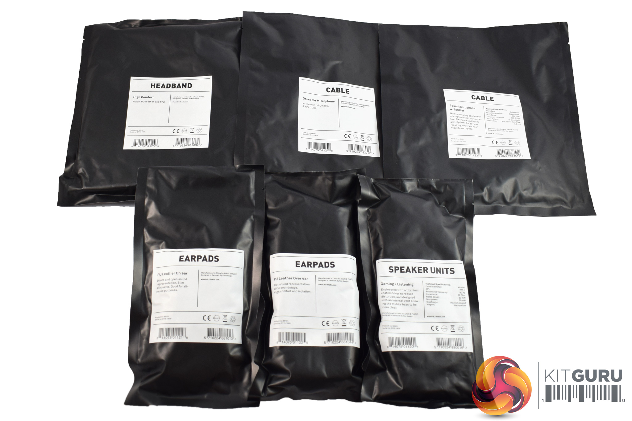 Other than that, the box is filled with 6 small packets. Each contains one of the different modular components for you to use when assembling the headset.