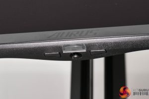All of the monitor's controls are placed under the chin, with a joystick used to navigate the OSD flanked by a power button and a resolution switch button.