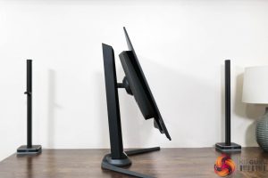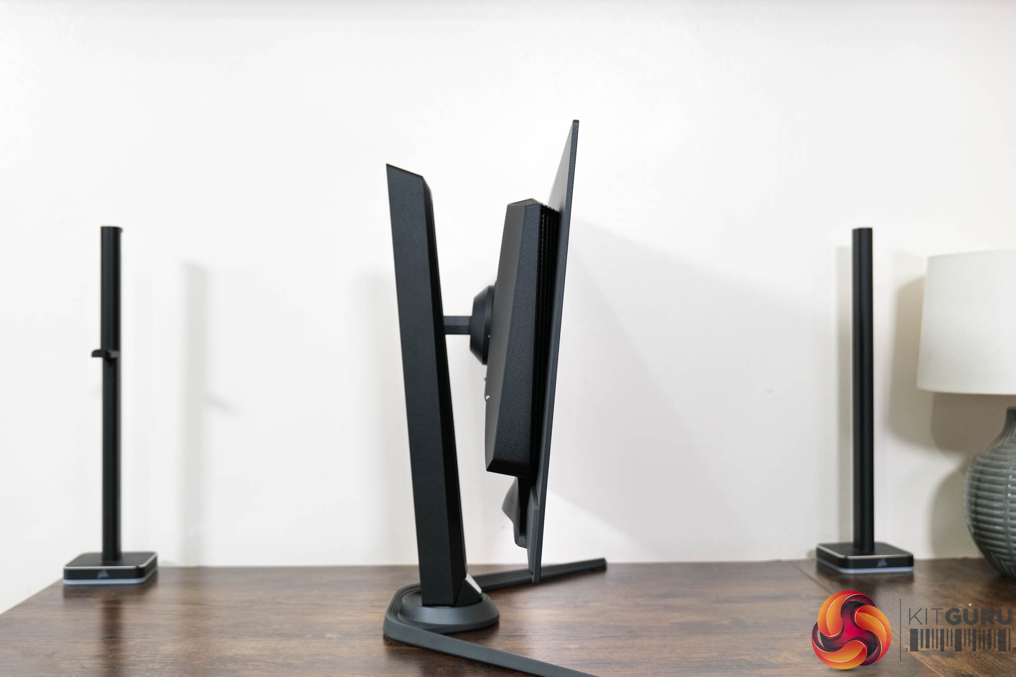 The stand also offers the full set of ergonomic adjustments. That includes up to 130mm of height adjust, 20 degrees of swivel both left and right, tilt from 5 degrees downwards to 20 degrees upwards, alongside 90 degree pivot functionality, so you can use the display vertically if you wish. On top of that, VESA 100×100 mounts are also supported.