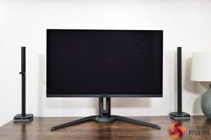 Build quality of the stand feels good and the V-shaped foot is made of metal which is always good to see, and it measures 54cm across and approximately 27cm from front to back.