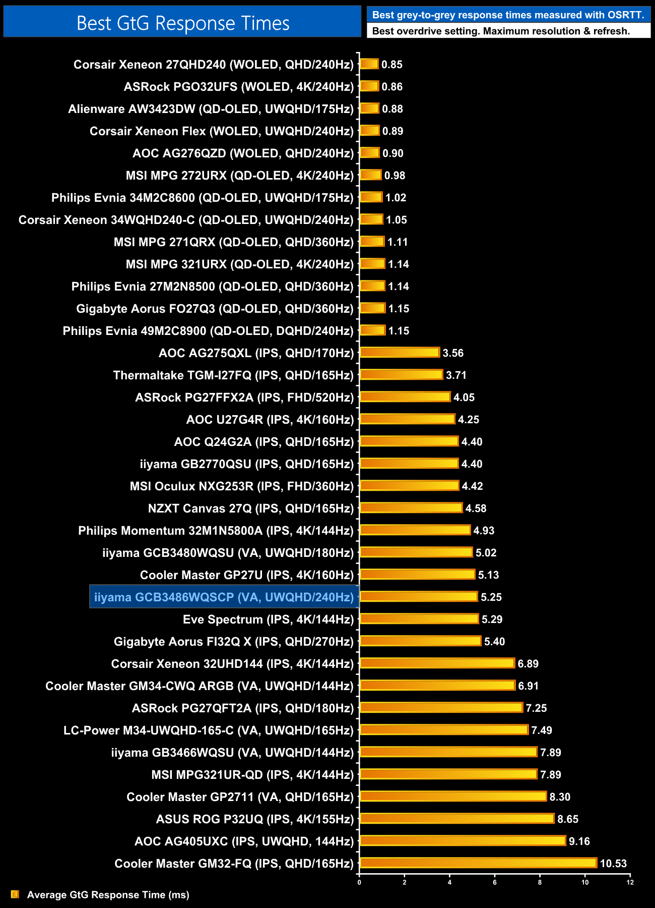 In terms of how these results stack up to the competition, if we ignore OLED, it's pretty middle-of-the-road for an LCD monitor – we have seen faster, but we also have to remember the price is just £350.