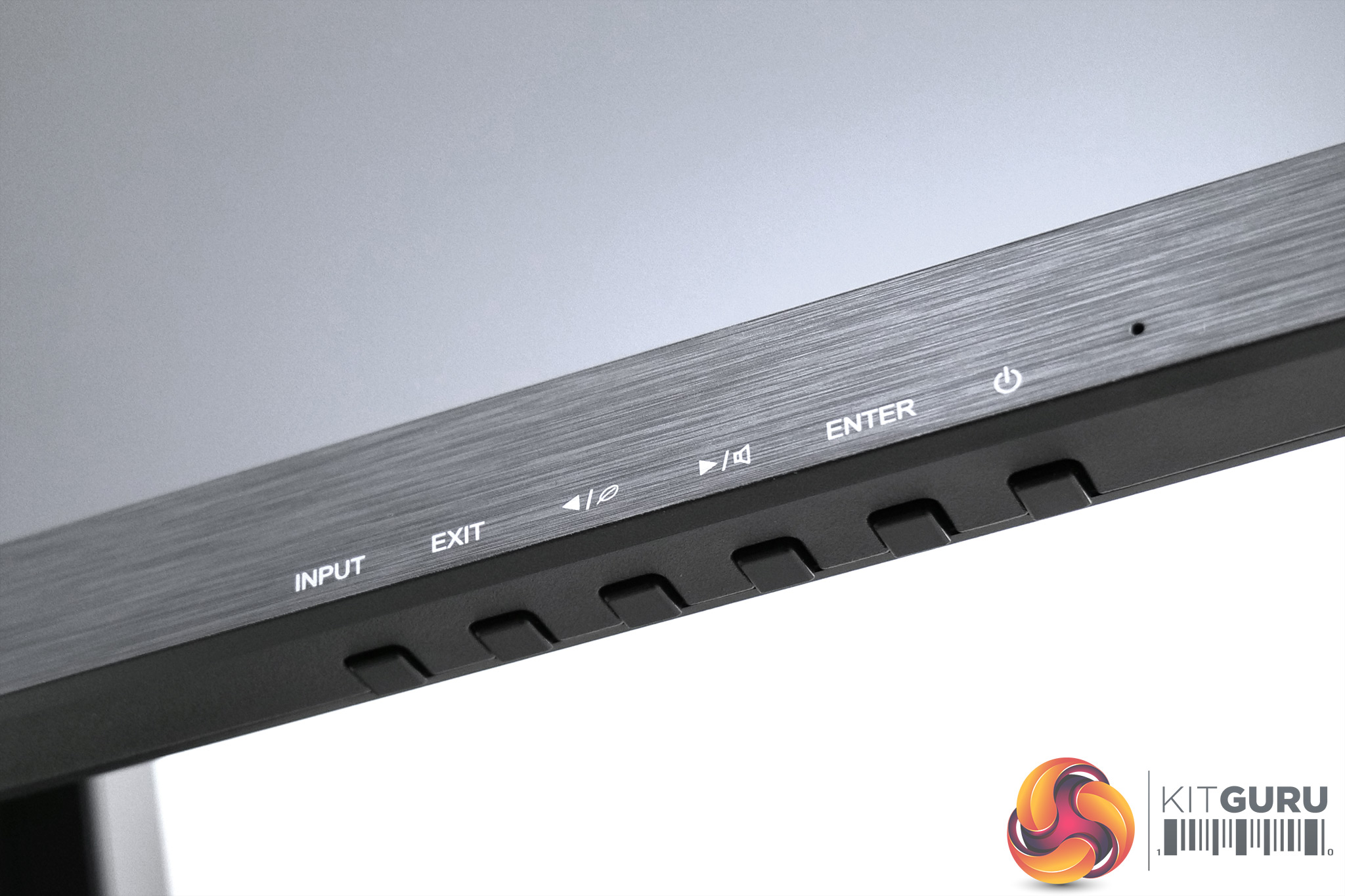 We can note the lack of a joystick however, so to control the OSD six buttons are placed on the underside of the bottom bezel. White legends are printed on the bezel itself so you know which button is which, but this is another clear cost-cutting measure.