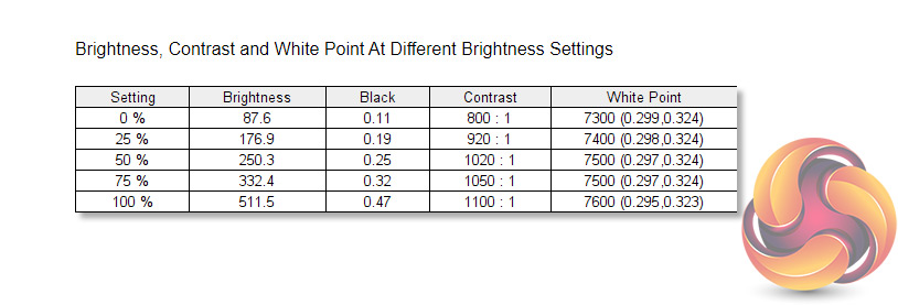 - A monitor’s contrast ratio at various brightness levels in the OSD.