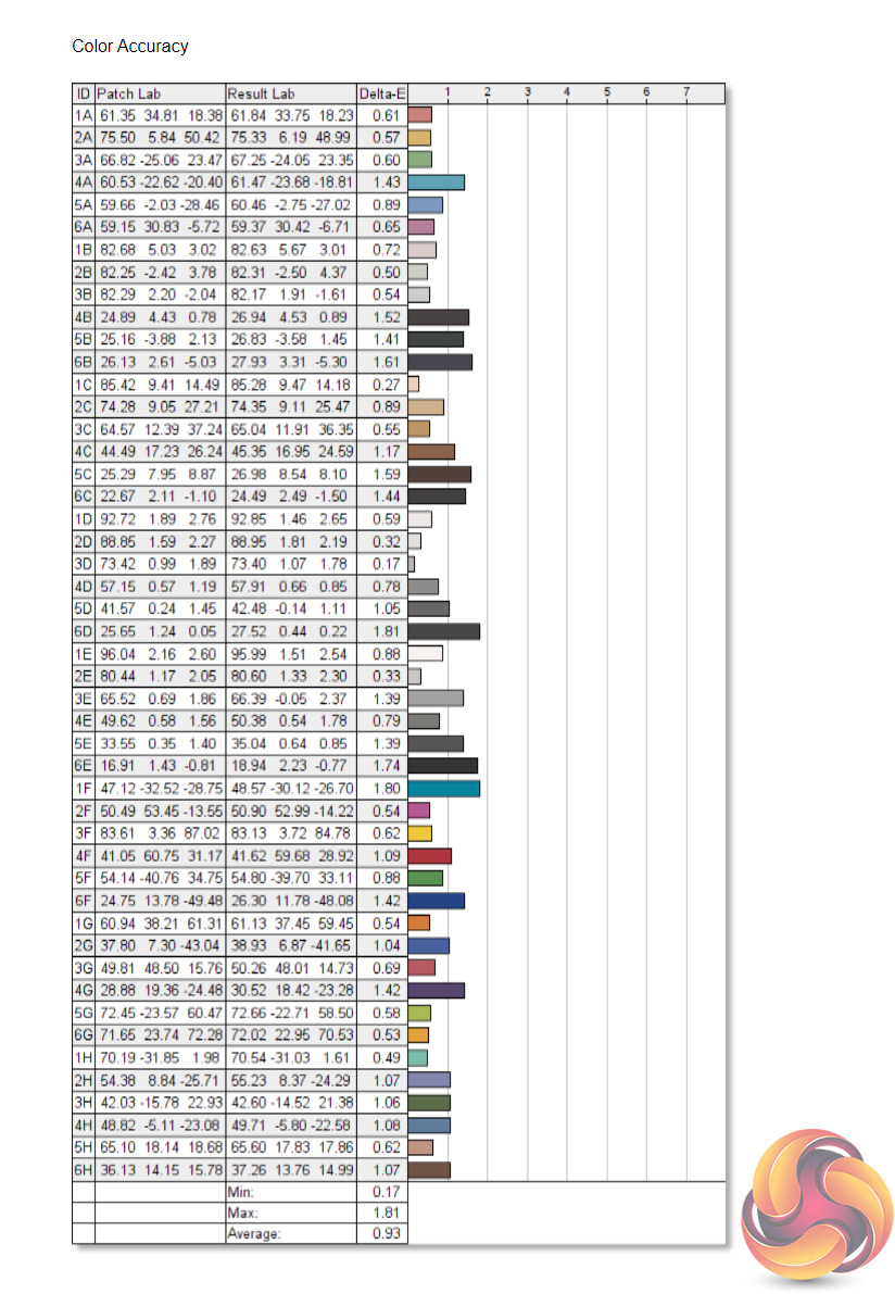 - The colour accuracy, expressed as a Delta E ratio, with a result under 3 being fine for normal use, and under 2 being great for colour-accurate design work.