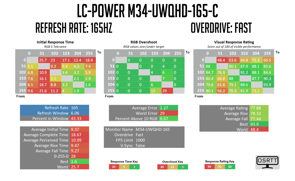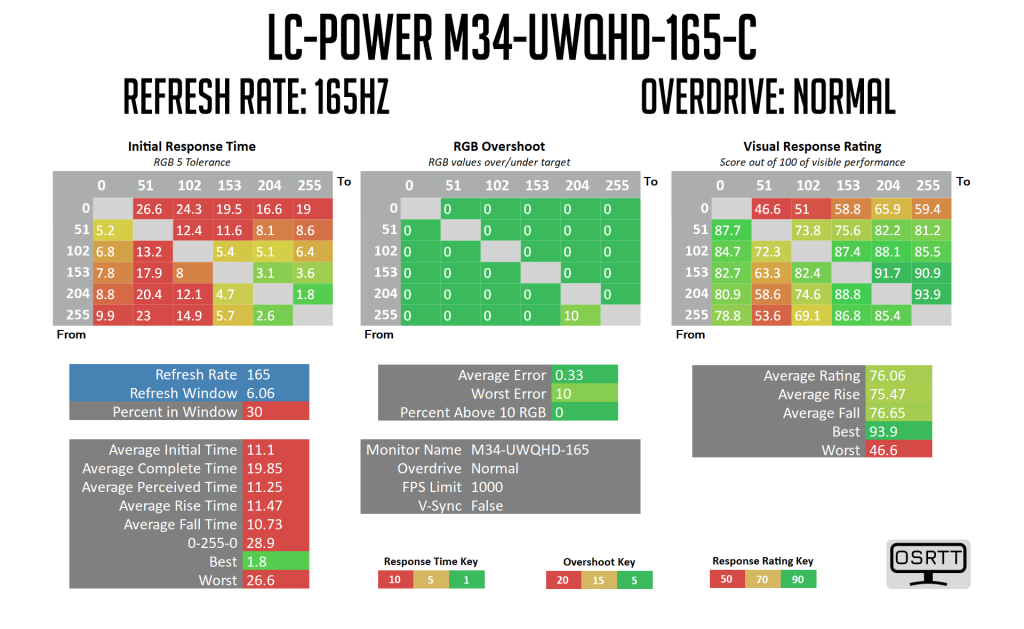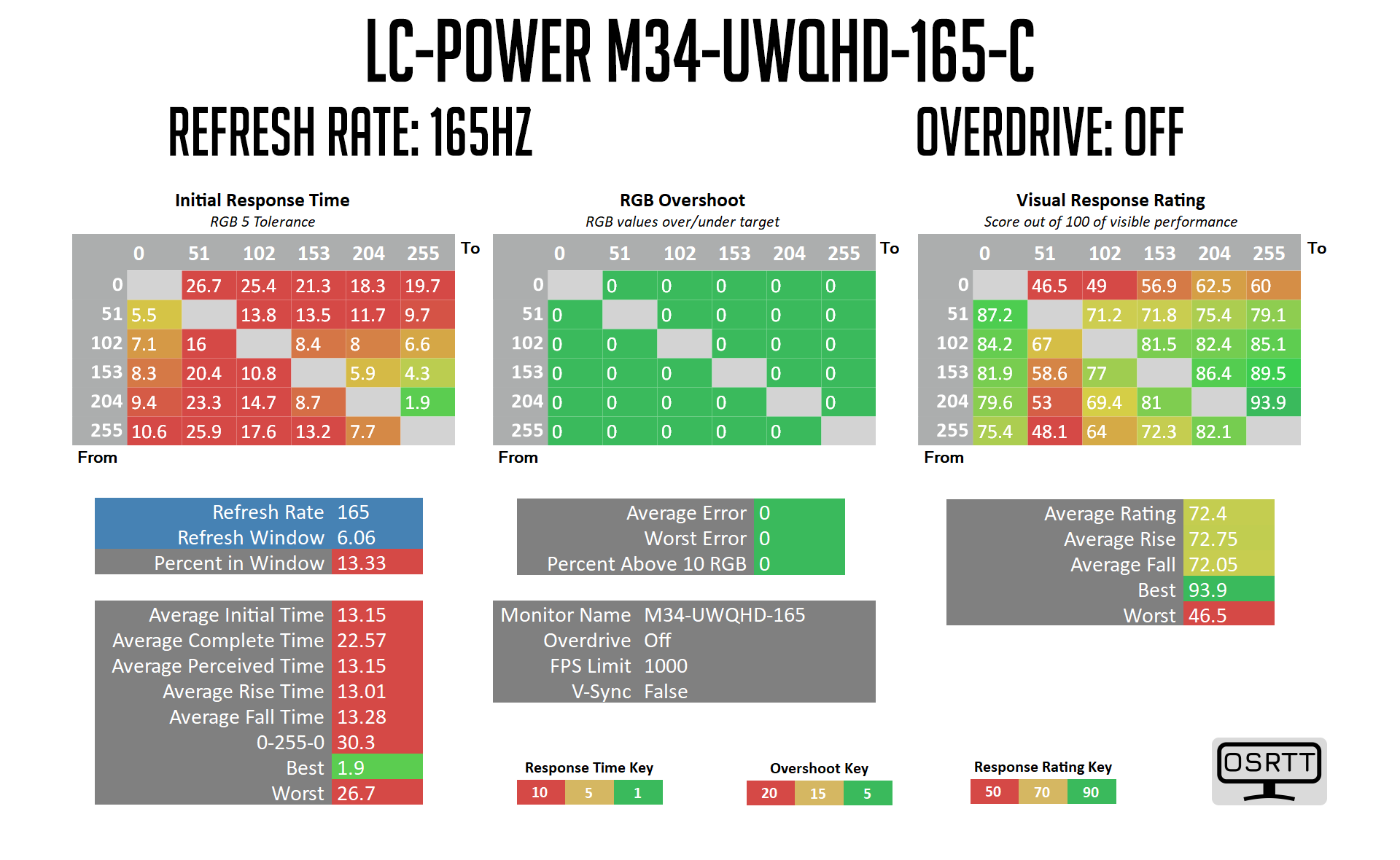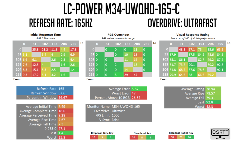 We test the M34-UWQHD-165-C at 165Hz, using all four of the overdrive settings found within the OSD.