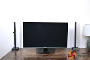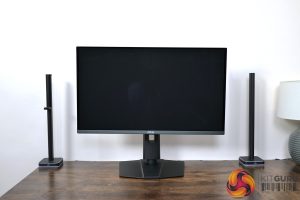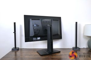 Positioned centrally on the rear of the screen, we also find a small joystick used to navigate the OSD, flanked by two buttons – one is a simple power button, the other is a customisable option which can be configured using MSI's GamingIntelligence software.