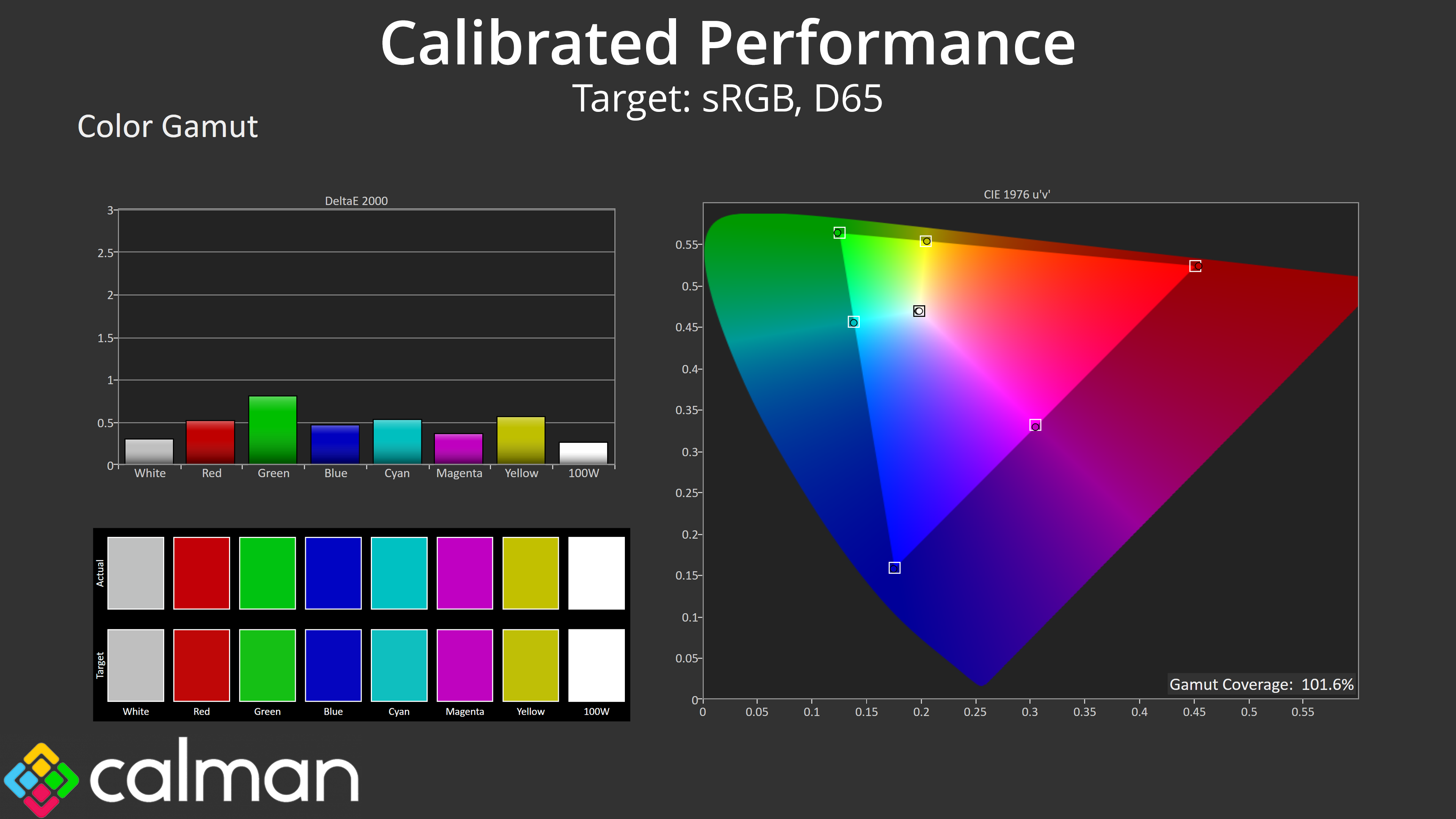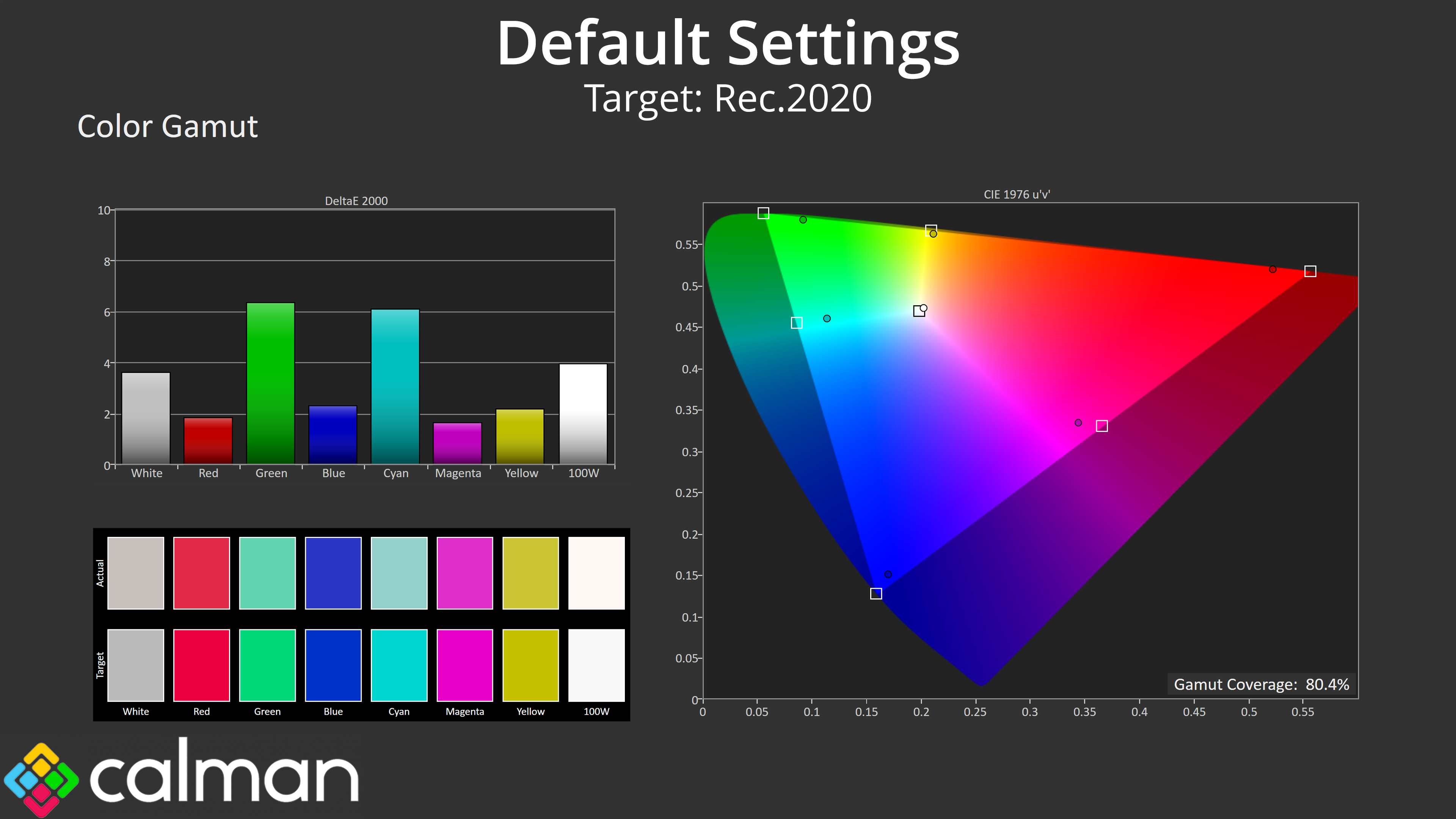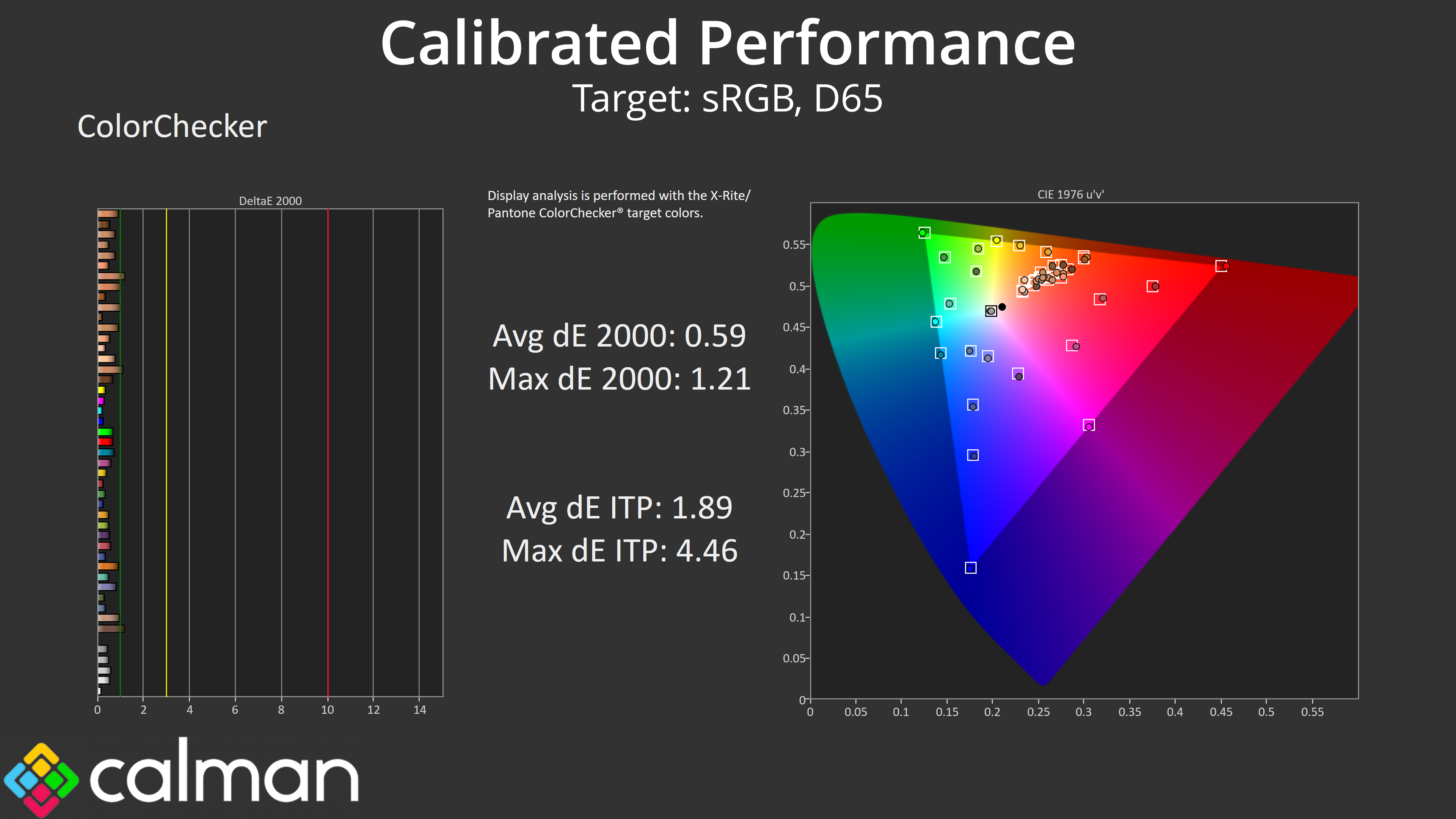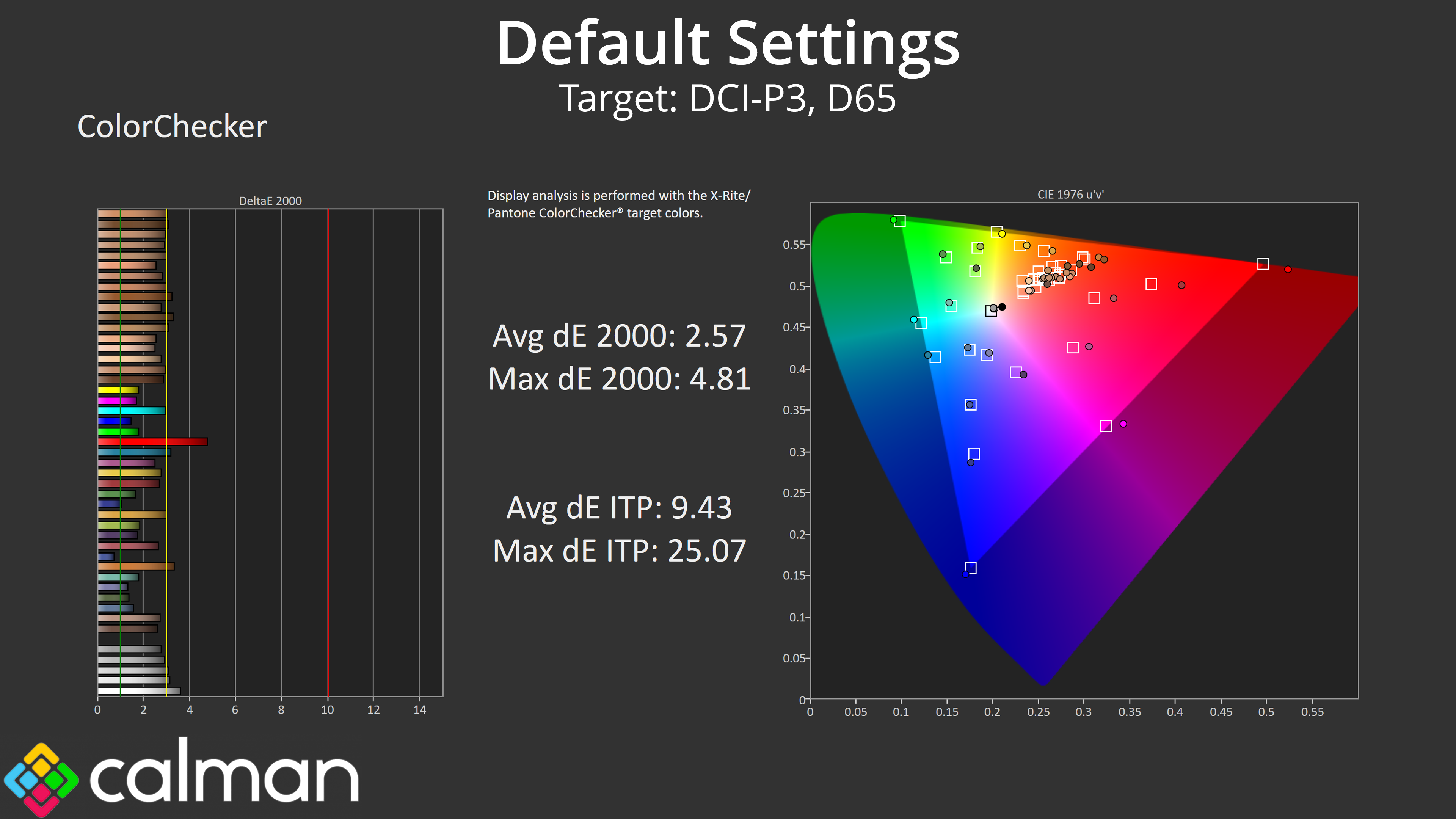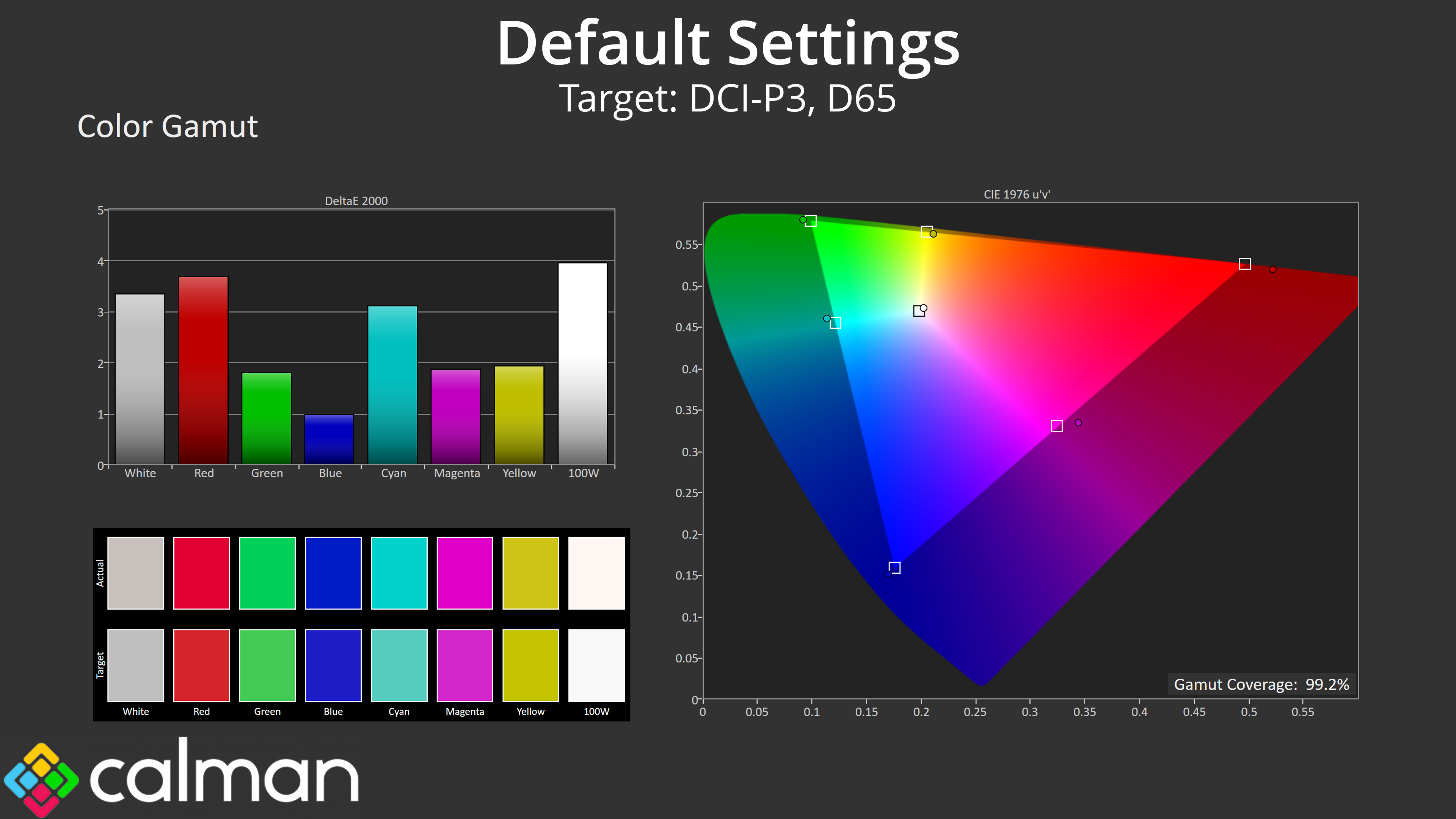 Things do look better relative to the DCI-P3 colour space however, with an average dE 2000 of 2.14.