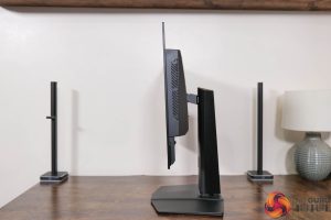 The stand does offer the full array of ergonomic adjustments too, and that includes up to 110mm of height adjustment, 30 degrees of swivel both left and right, tilt from -5 to +20 degrees, along with full 90 degree pivot functionality if you want to use the screen vertically. Third party VESA 100×100 mounts are also supported.