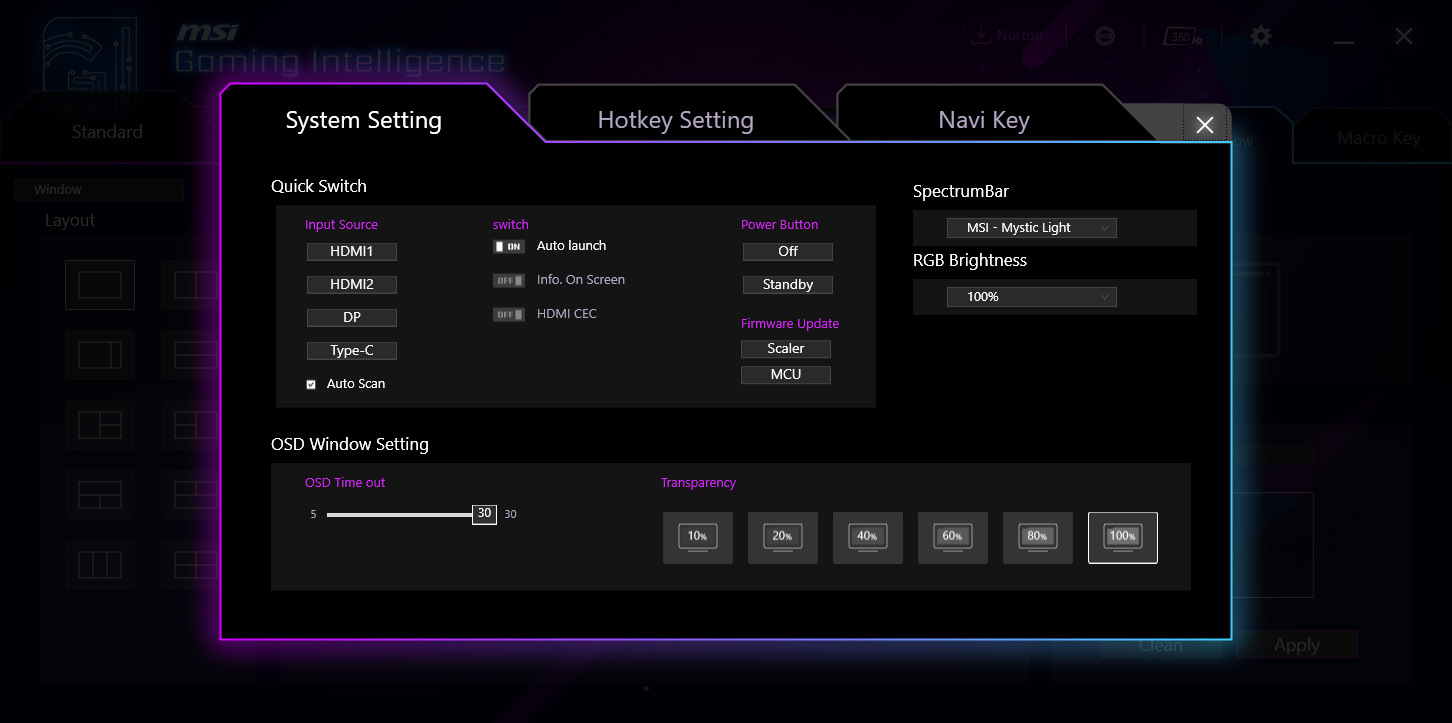 There's also the option to install MSI's GamingIntelligence app which can be used to control the monitor direct from your Windows desktop. This is an optional extra but it offers all the same options as the OSD for adjusting settings, while it can also be used to update the monitor's firmware.