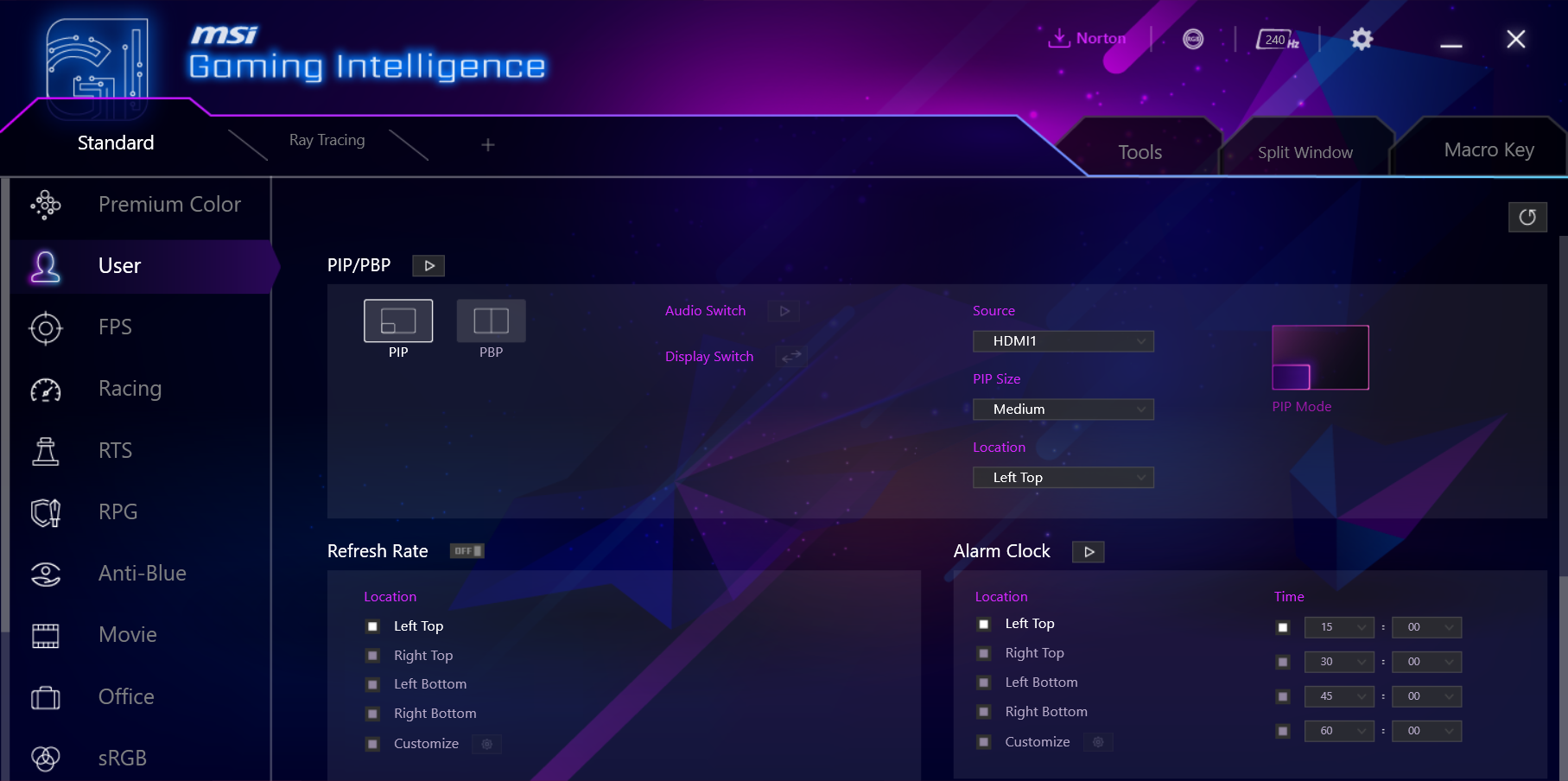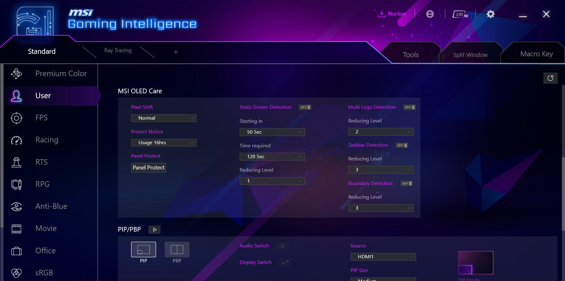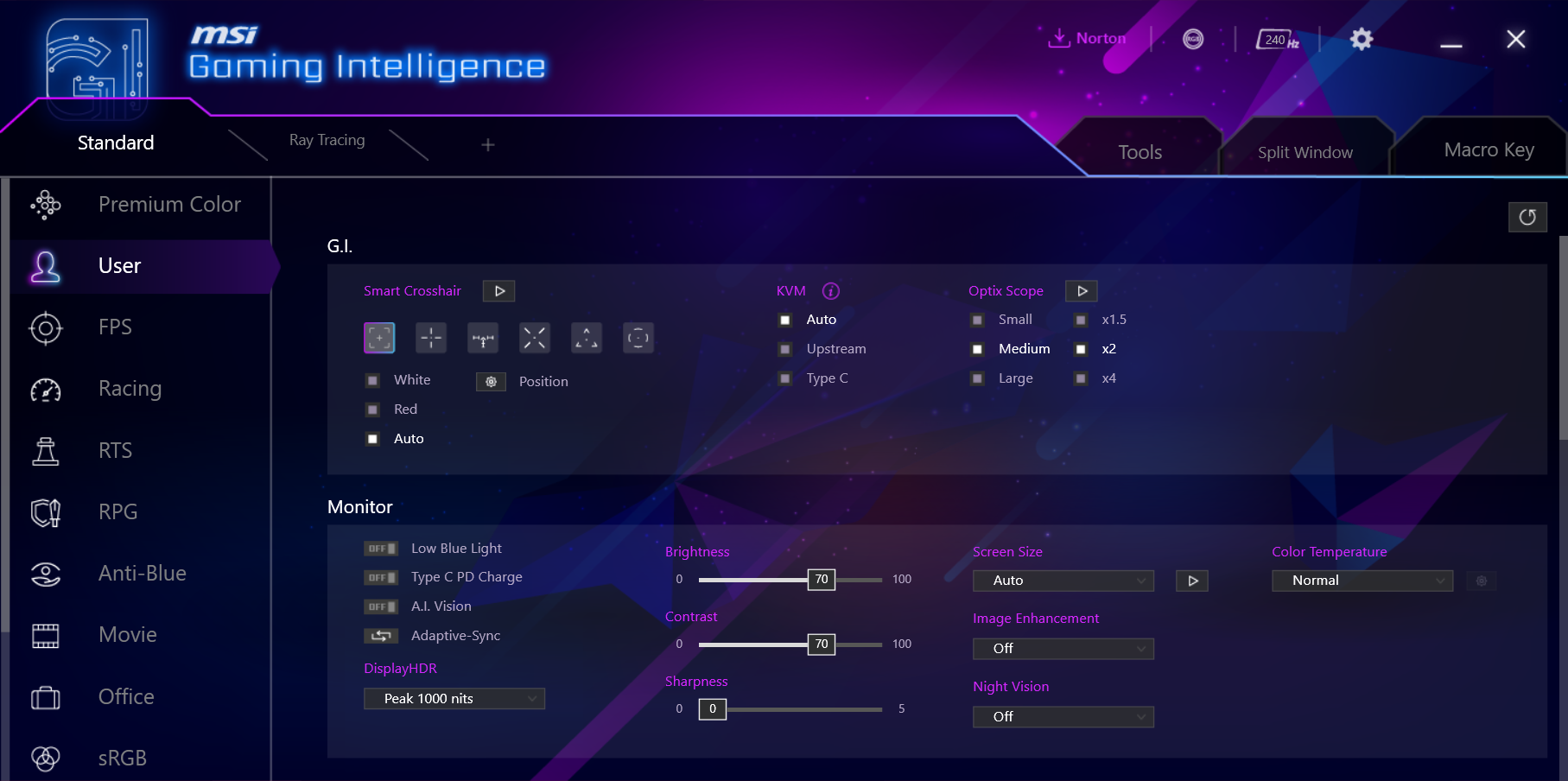 There's also the option to install MSI's GamingIntelligence app which can be used to control the monitor direct from your Windows desktop. I do find it slightly annoying that the window size cannot be adjusted, but it has all the same options as the OSD for adjusting things, while it can also be used to update the monitor's firmware.