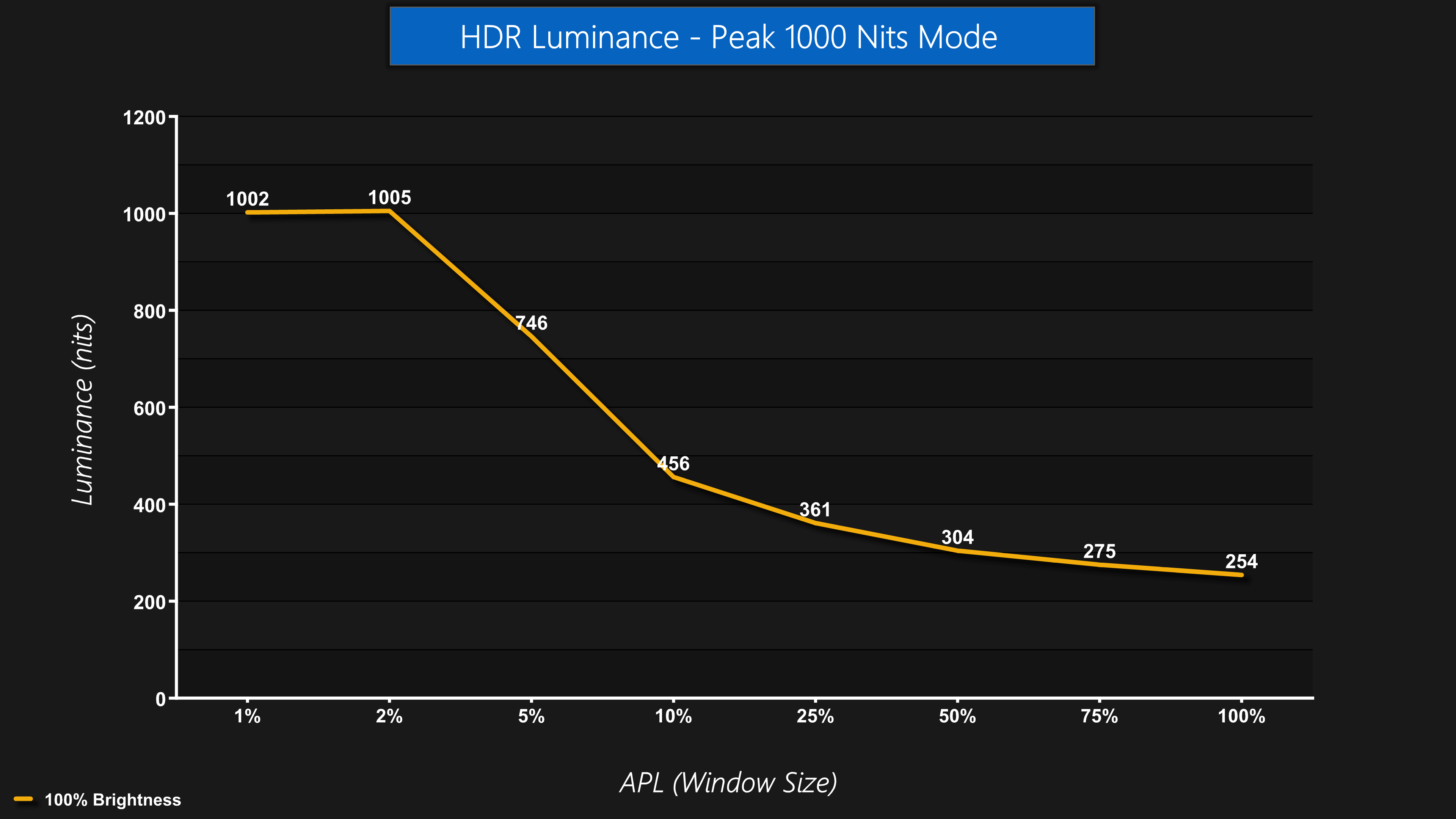There is, however, a Peak 1000 Nits mode too, which does what it says on the tin – delivering a peak of 1000 nits for 1% and 2% APLs, before dropping off as the window size increases.