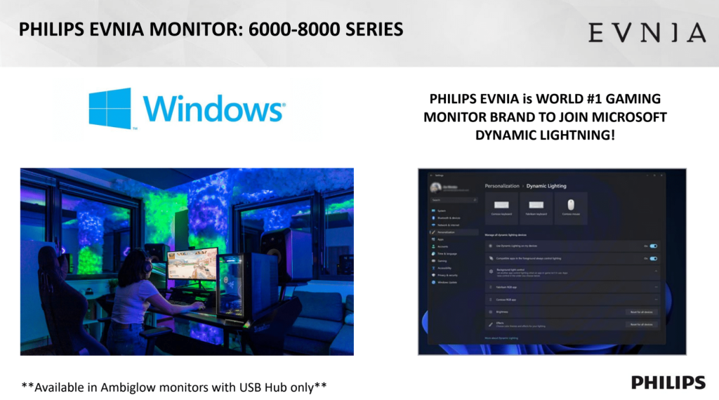 But wait, there's more! As a bonus announcement, Evnia also revealed the fact that it will be the world's first monitor brand to offer compatibility with Microsoft's Dynamic Lighting, a hardware-agnostic way of synchronising RGB lighting across devices from directly within Windows. Apart from the fact that it will only be offered on 6000 and 8000-series screens that support Ambiglow and have a USB hub, we don't know a whole lot about this integration yet, but it is certainly good news and I look forward to seeing how it works in practice.