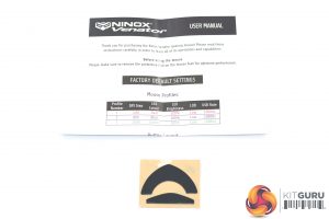 Inside, included accessories are thin on the ground – we get an A4 user guide as well as two spare mouse feet.