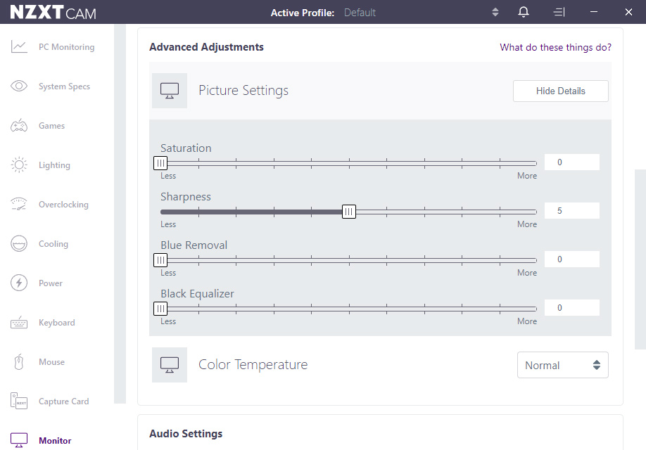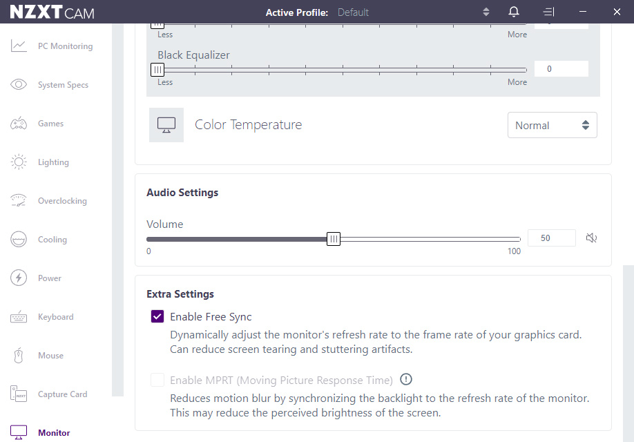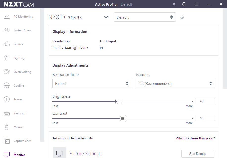 If you connect your monitor to your PC via USB cable, there is also the option to adjust the monitor settings within Windows, thanks to NZXT's CAM software. I've not used CAM for a few years and I was pleasantly surprised with how smooth the software ran, it was nice and responsive and you don't need an NZXT account to tweak the settings.
