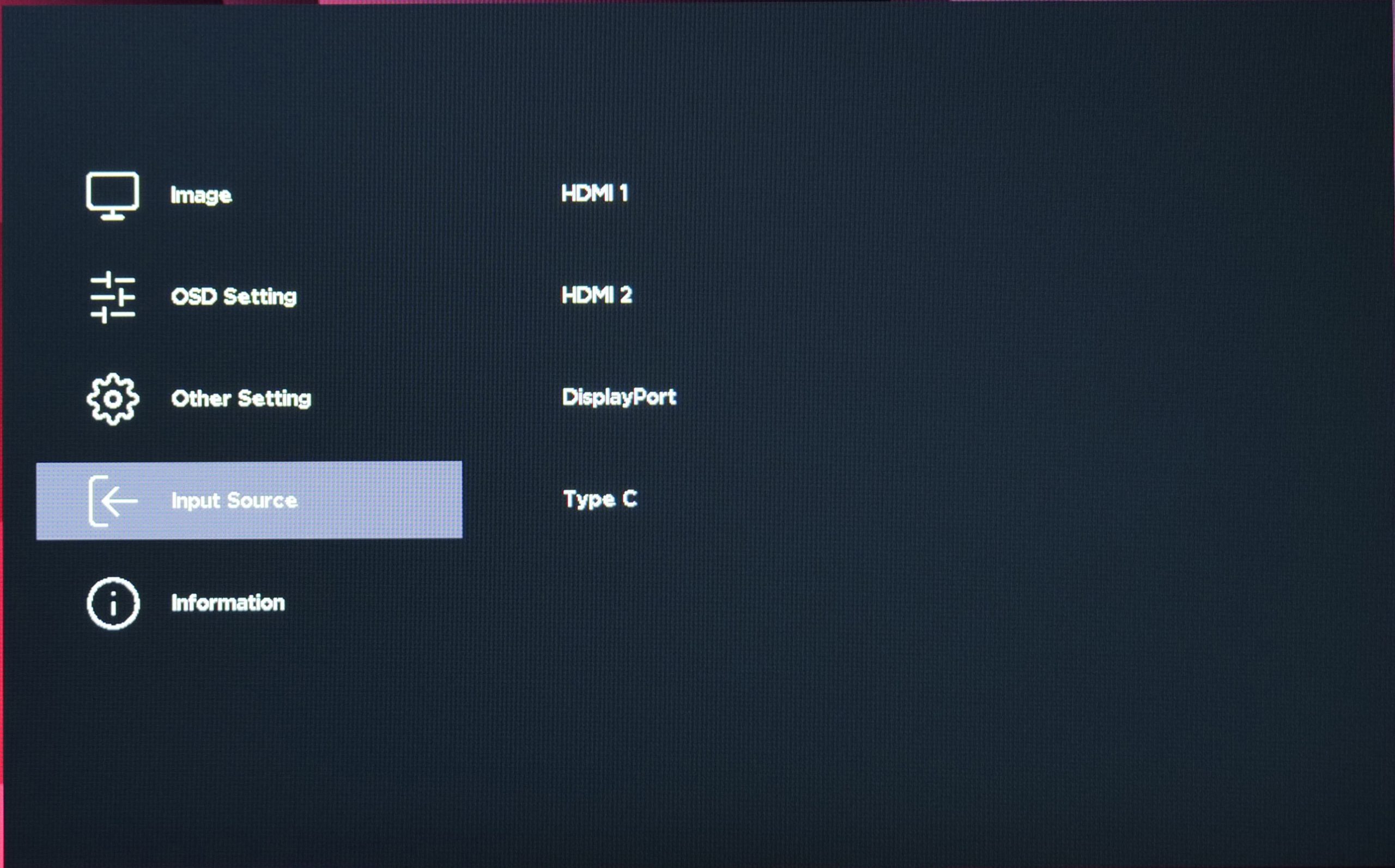 The controls are split into five main tabs – Image, OSD Setting, Other Setting, Input Source, and Information: