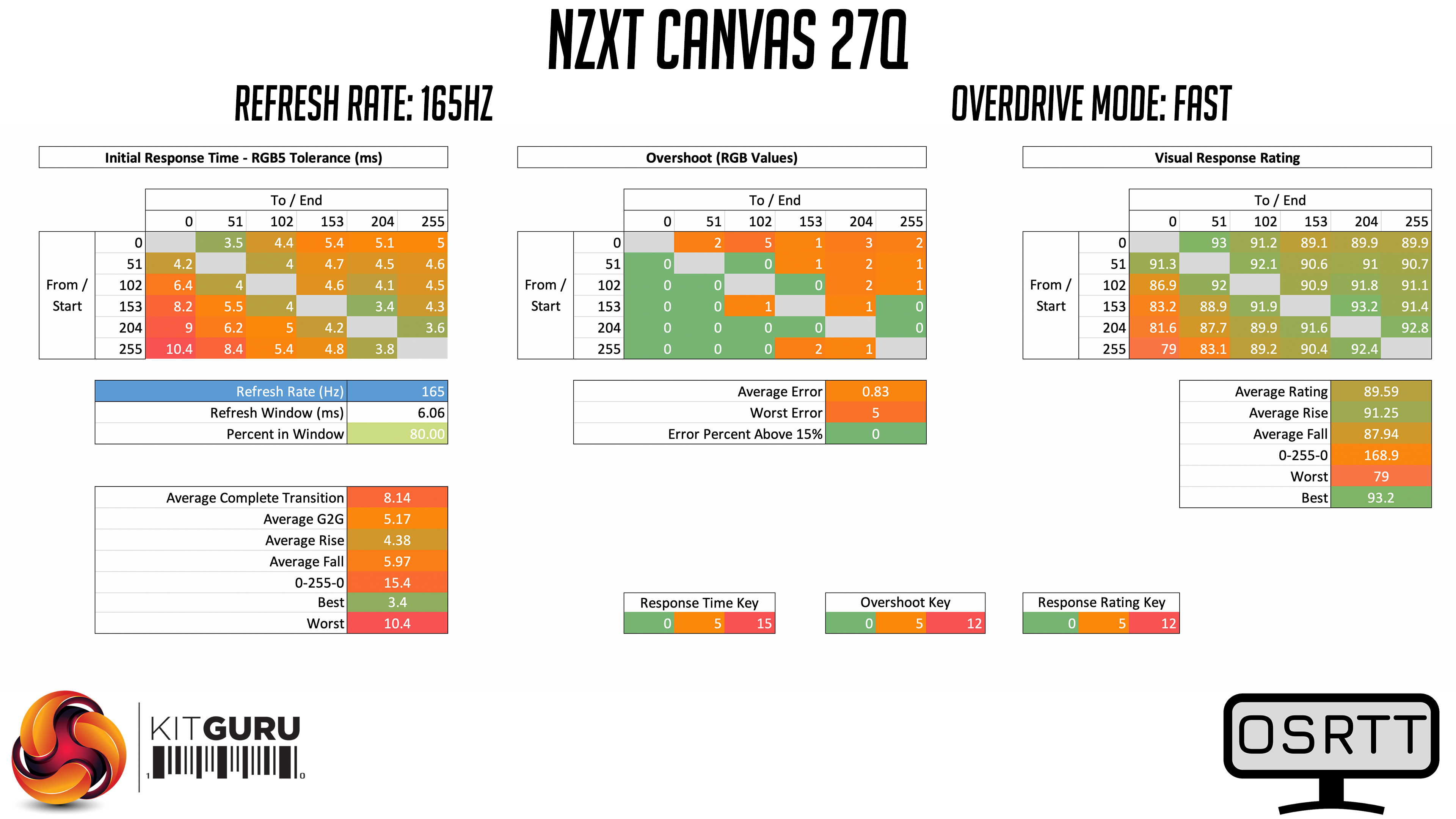The main problem area for the 27Q seems to be the fall times when transitioning to RGB 0, or a complete black (these can be seen on the left-most column on the heatmap).