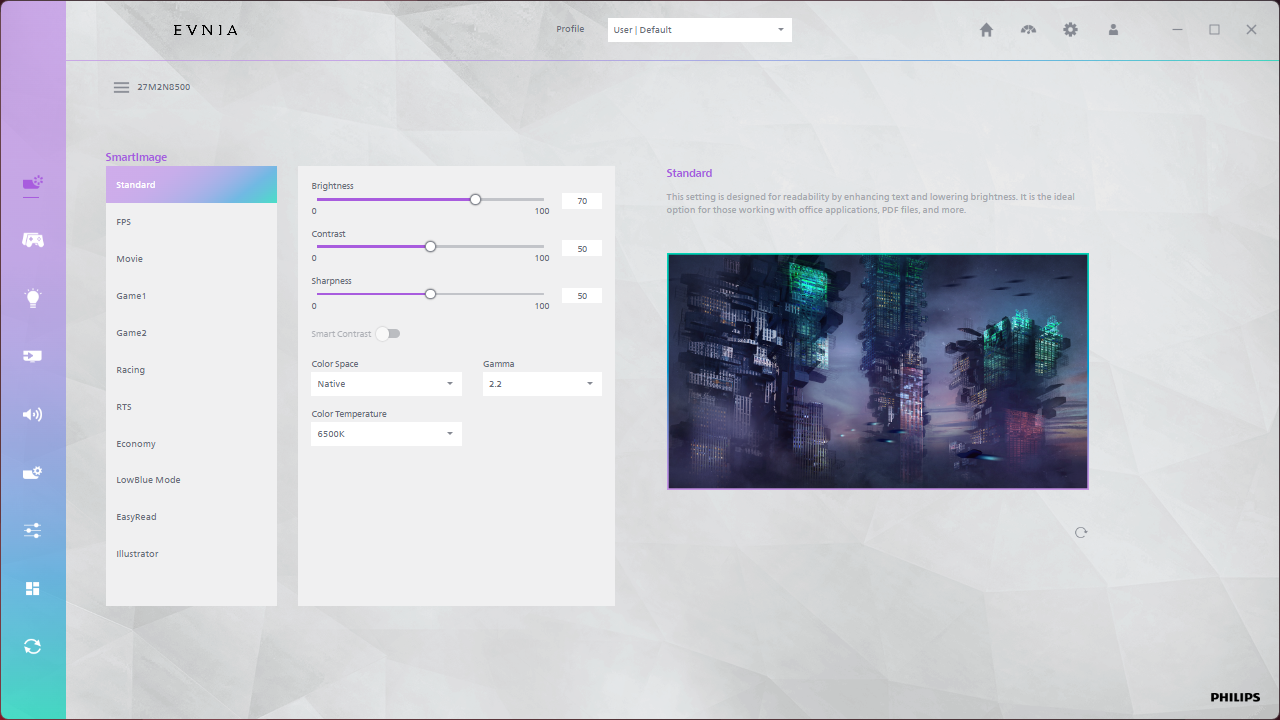 There's also the option to use Evnia Precision Center, a Windows-based piece of software that lets you adjust the monitor's settings directly from your PC. It seems absolutely fine in my usage, plus it allows the monitor's firmware to be updated which is always a positive.
