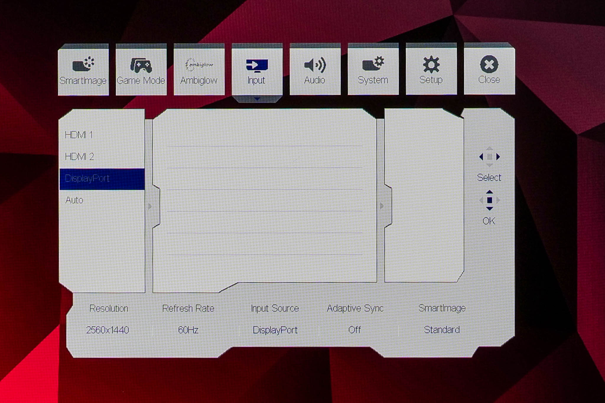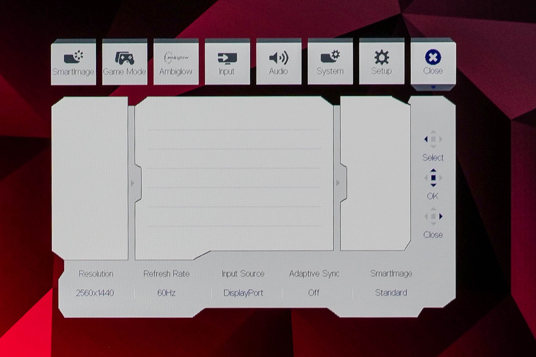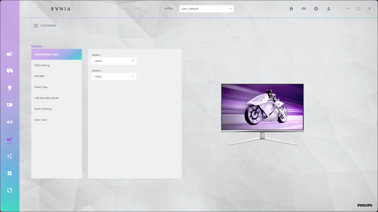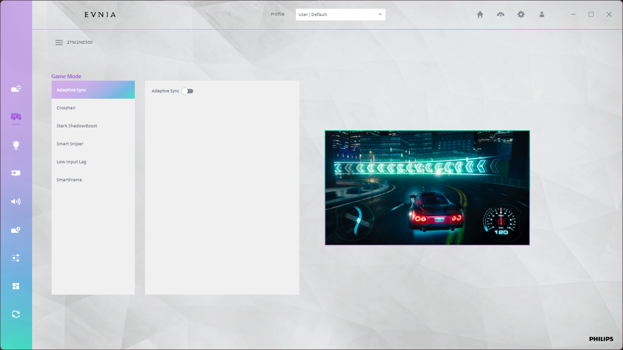 The OSD system appears unchanged since we last looked at an Evnia screen. It's perhaps not the prettiest UI going, but it has plenty of features and is easy to navigate using the joystick. My only real complaint is that there are no customisable shortcut options – being able to quickly adjust brightness without diving into the main OSD itself is always a welcome feature to me.