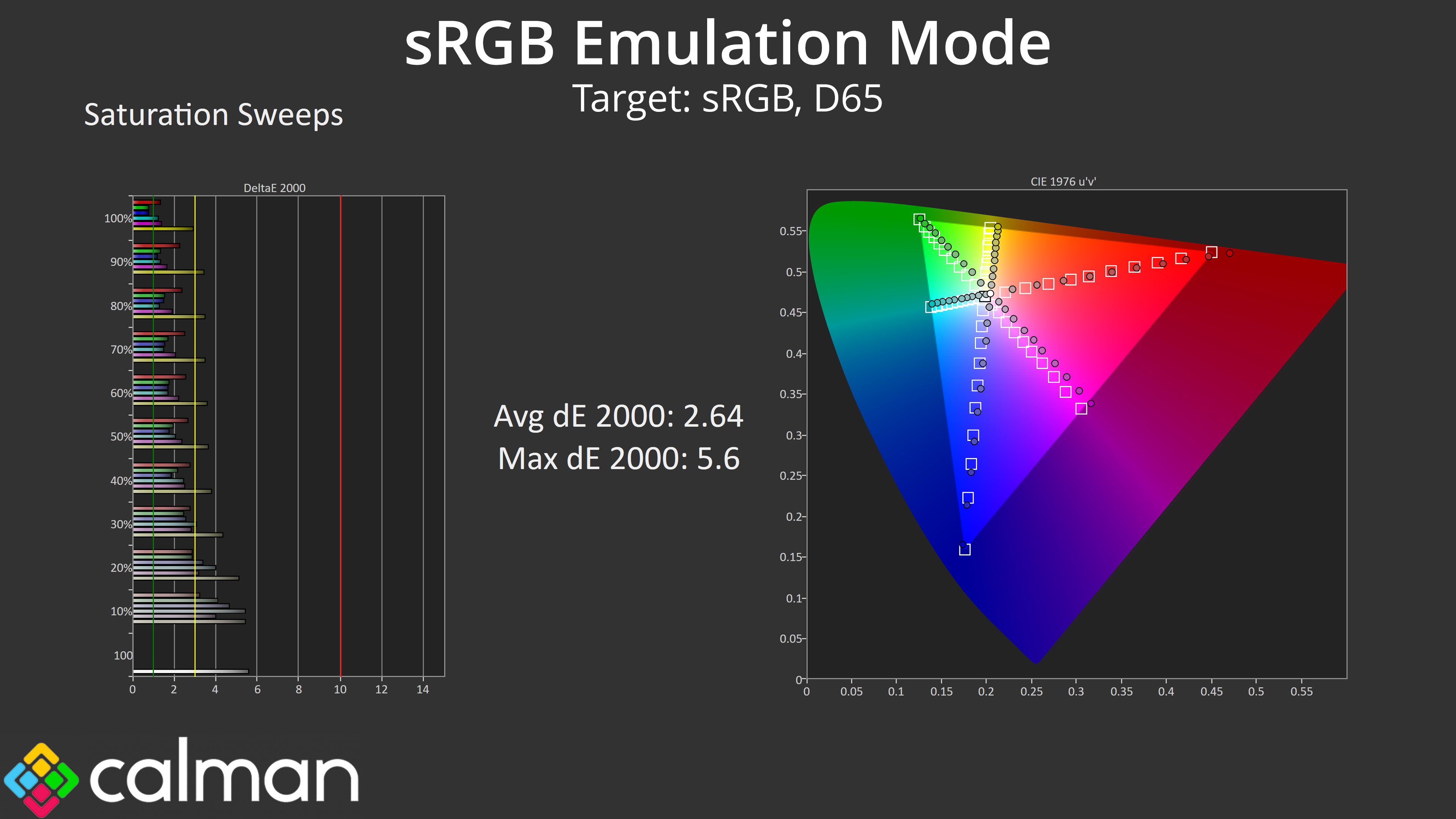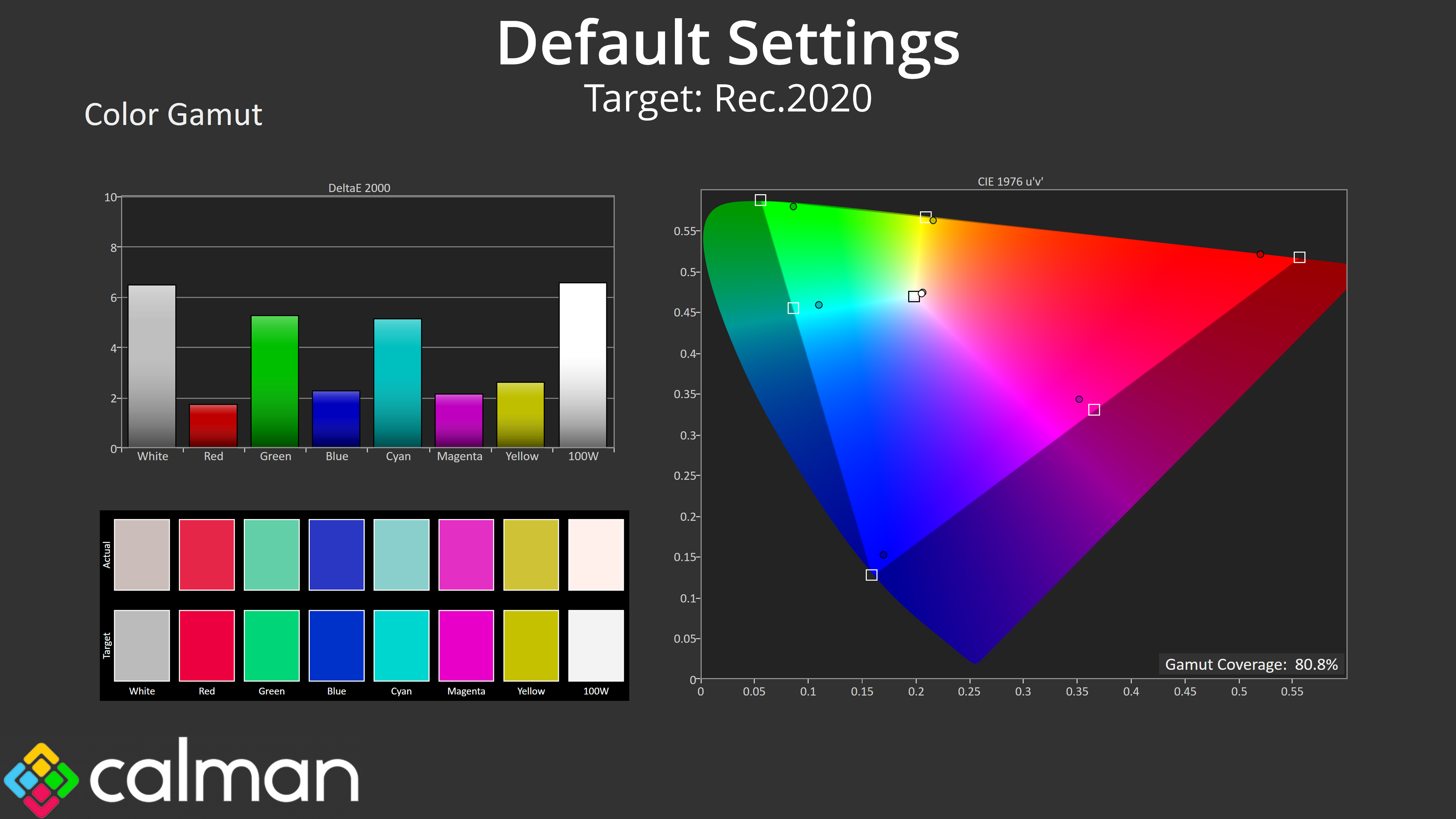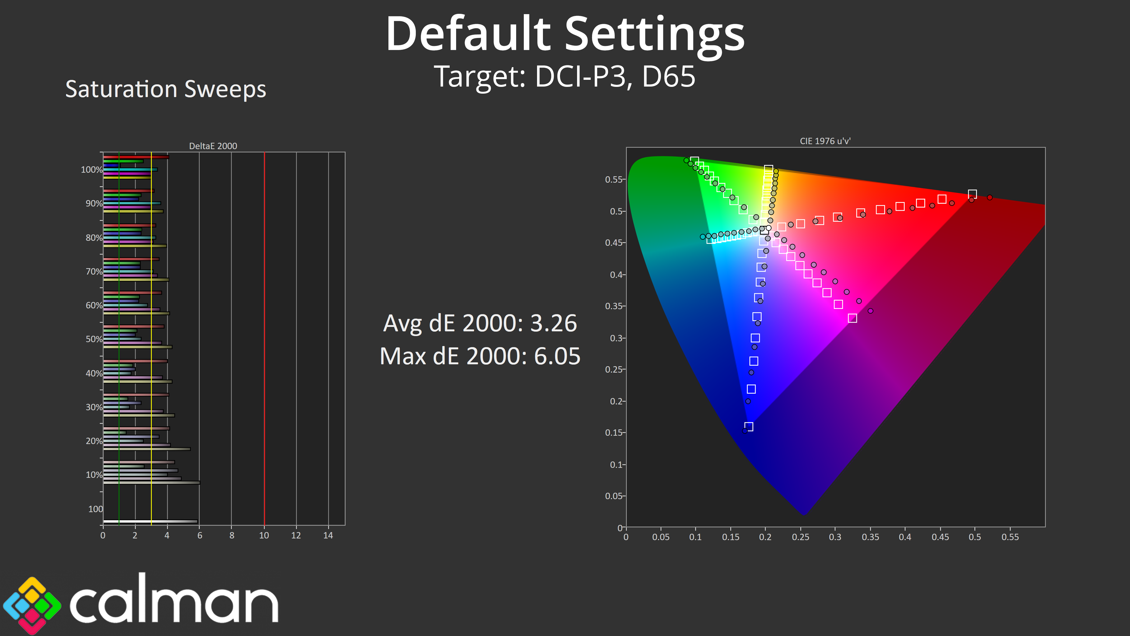 Relative to DCI-P3, it is better, but accuracy still isn't great, with an average dE 2000 of 3.26.